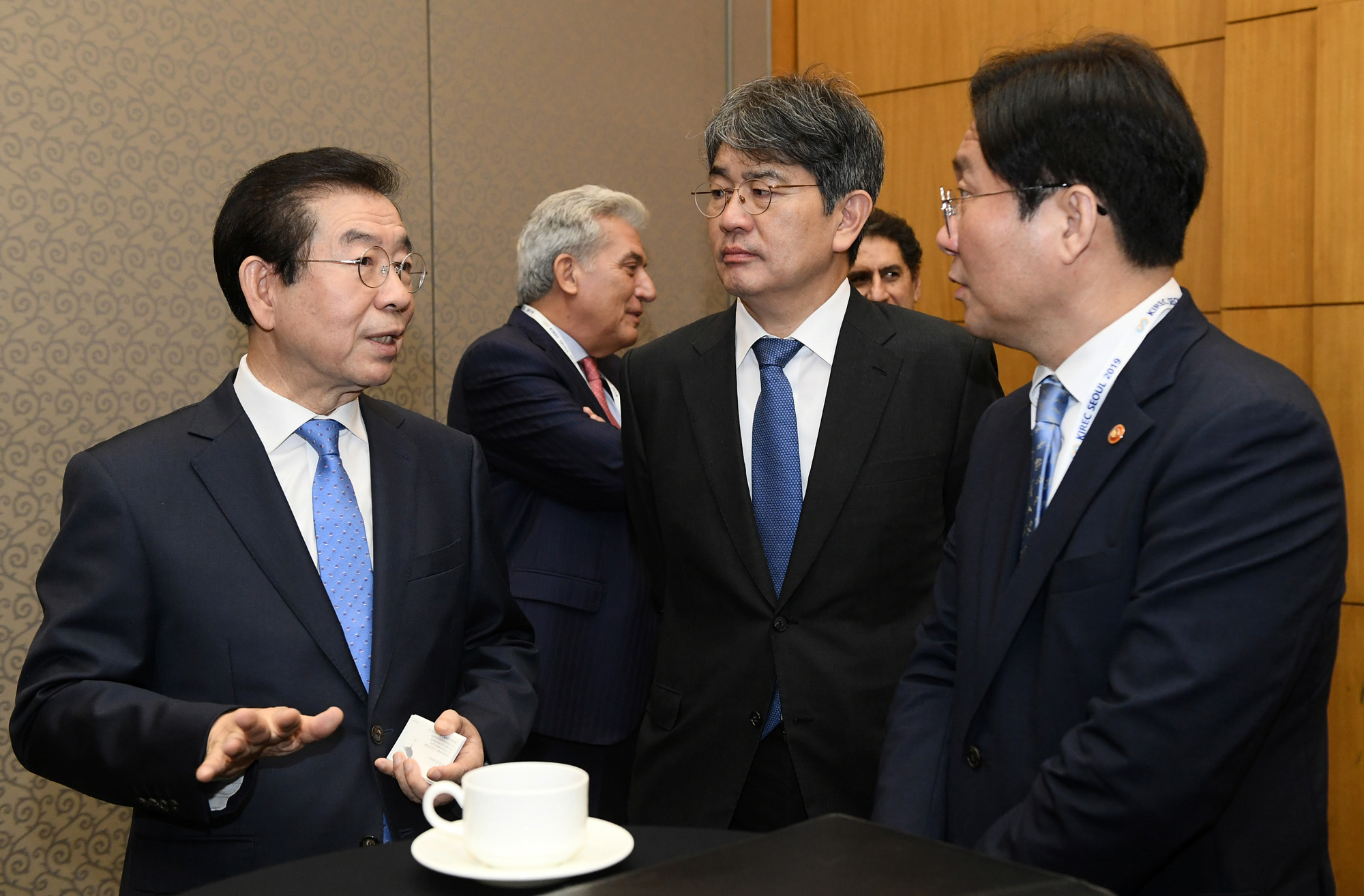 박원순 서울시장이 23일 오전 서울 강남구 코엑스에서 열린 제8회 세계재생에너지총회(KIREC)에 참석해 환영사를 하고 있다. 서울시 제공