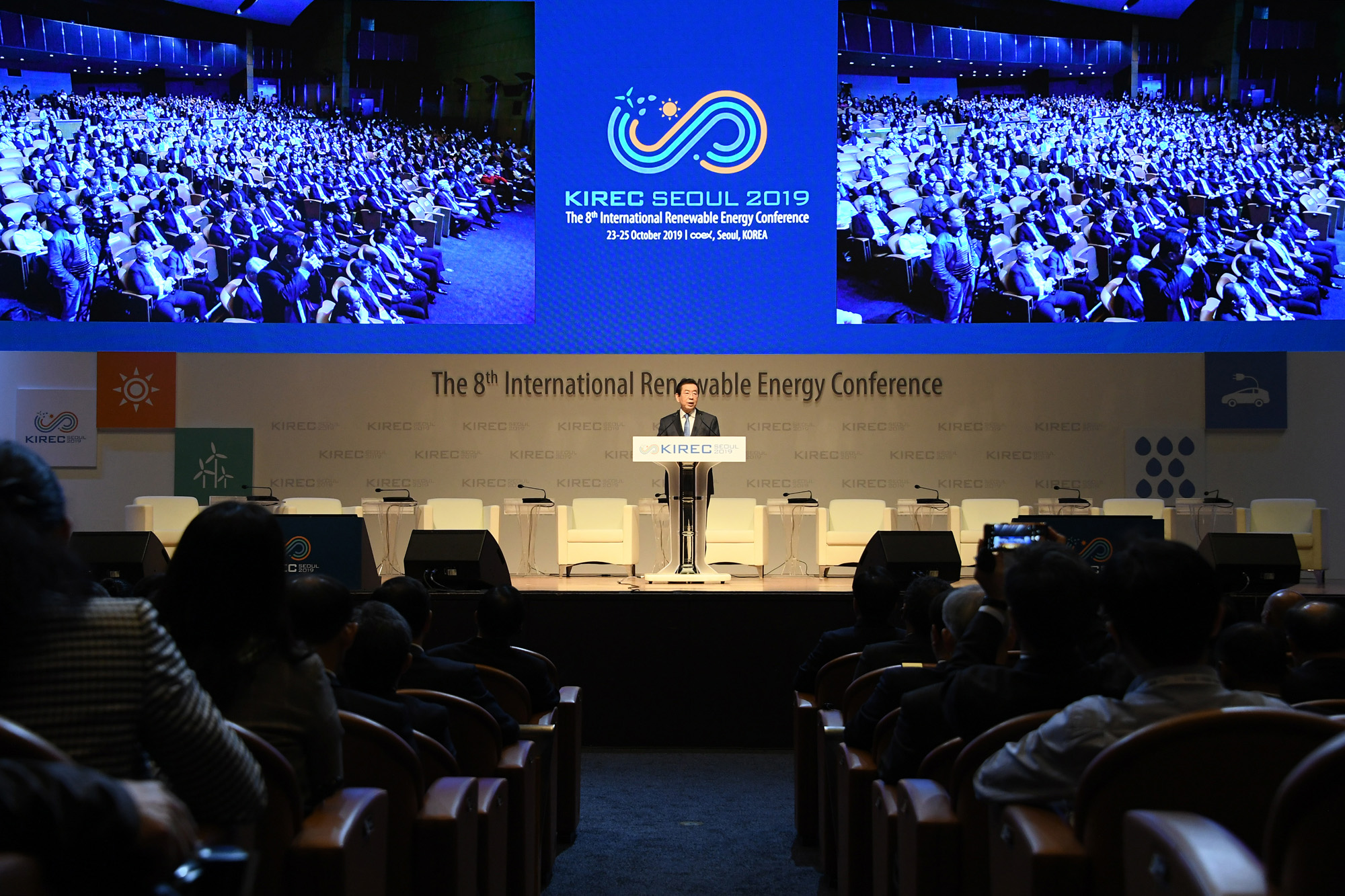 박원순 서울시장이 23일 오전 서울 강남구 코엑스에서 열린 제8회 세계재생에너지총회(KIREC)에 참석해 환영사를 하고 있다. 서울시 제공