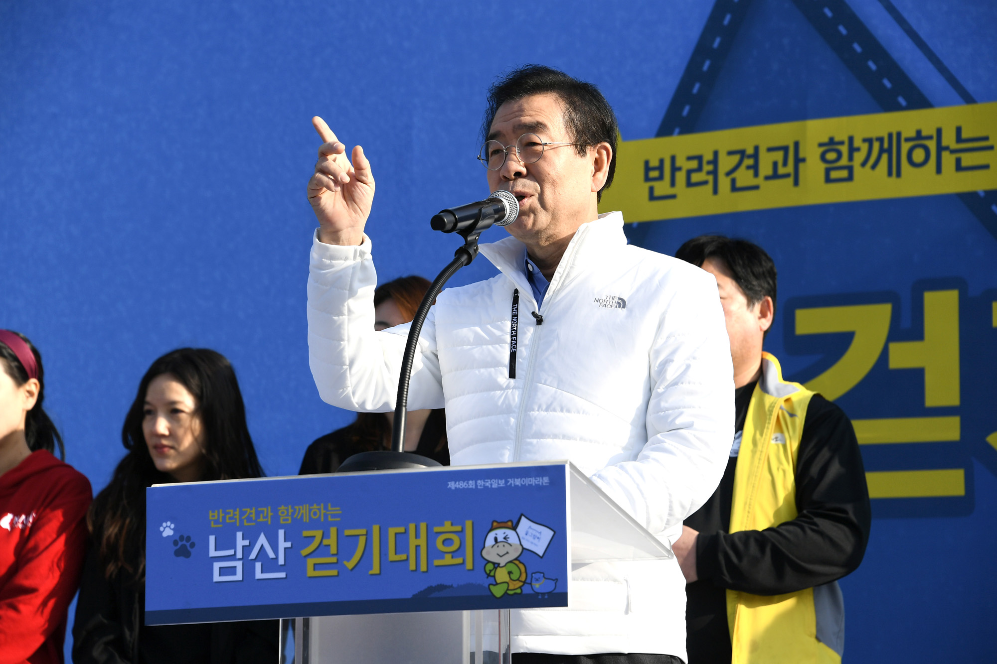 박원순 서울시장이 26일 오전 서울 중구 남산 백범광장에서 열린 '반려견과 함께하는 남산 걷기대회'에서 반려견과 걷고 있다. 서울시 제공