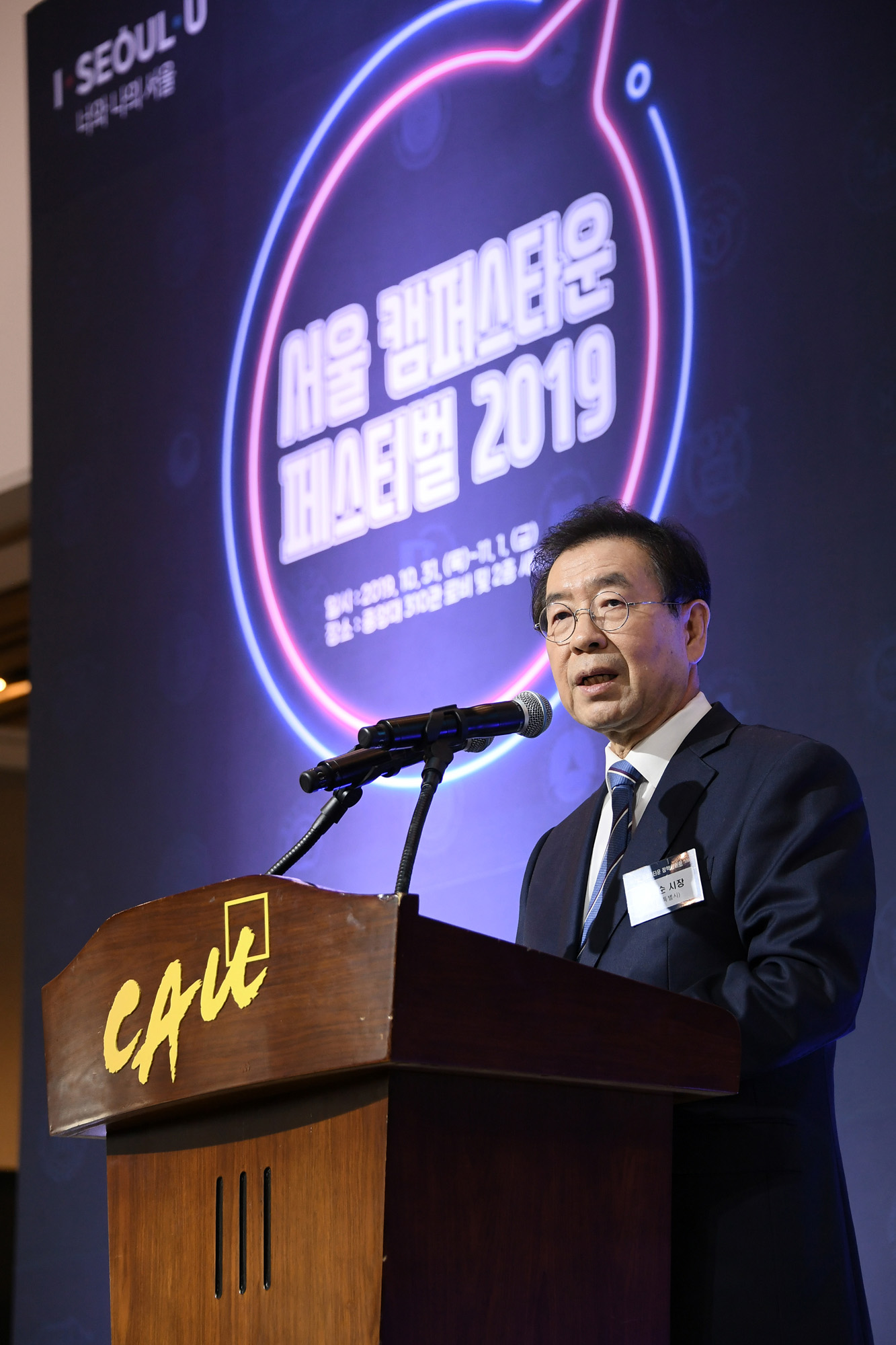 박원순 서울시장이 31일 오후 서울 동작구 중앙대학교 100주년기념관에서 열린 '서울 캠퍼스타운 페스티벌'에 참석해 환영사를 하고 있다. 서울시 제공
