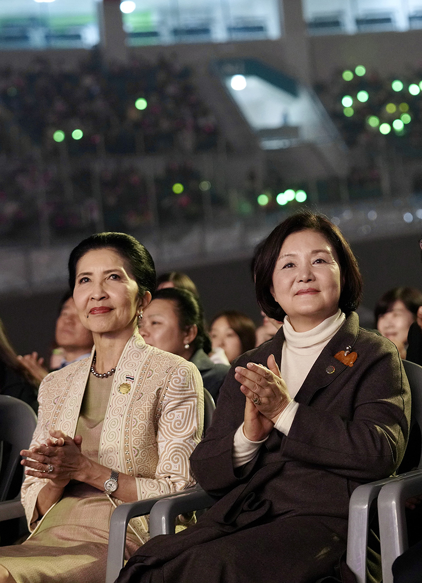 문재인 대통령의 부인 김정숙 여사와 쁘라윳 짠 오차 태국 총리의 부인 나라펀 여사가 24일 오후 창원 경륜장에서 열린 한·아세안 특별정상회의 전야제 '아세안 판타지아'에 참석해 있다.