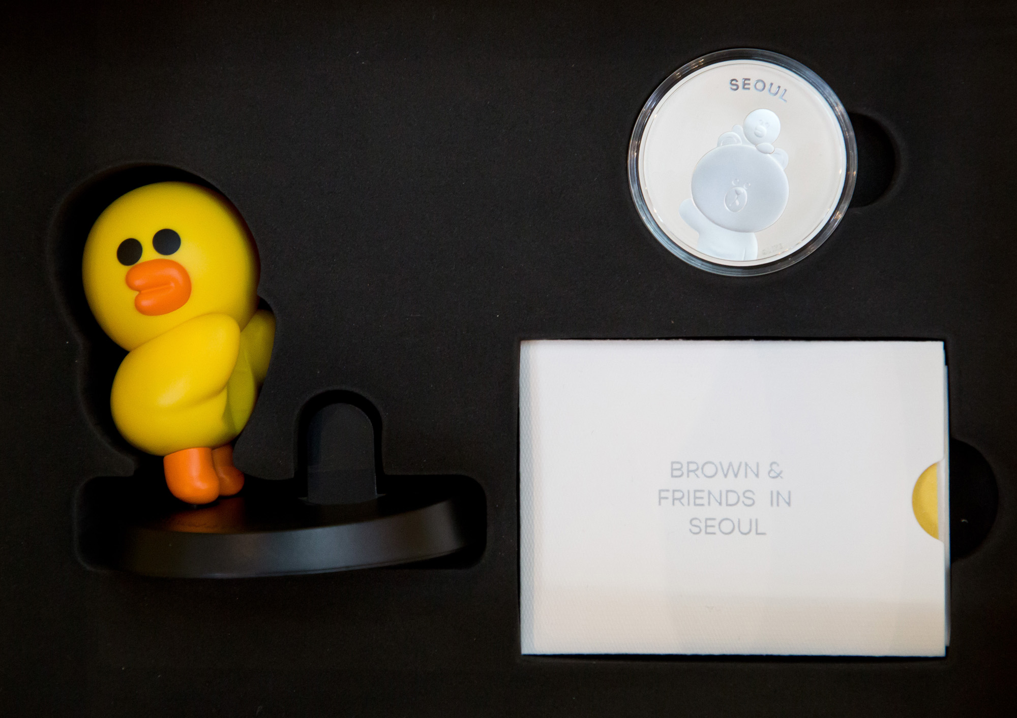 [Eoimage=서울] 임준선 기자 = 5일 오전 라인프렌즈 스토어 이태원점에서 선 보인 브라운앤 프렌즈 공시기념메달 2019.12.05
