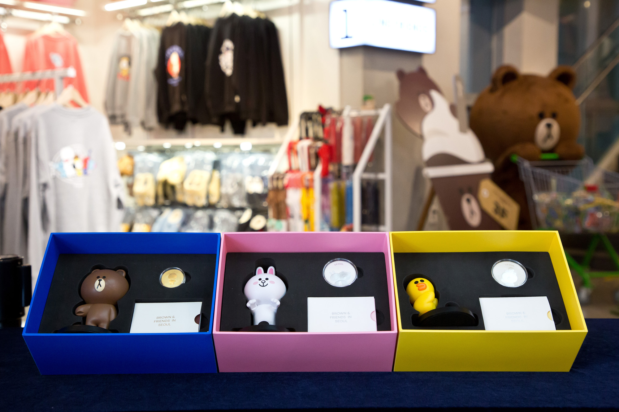 [Eoimage=서울] 임준선 기자 = 5일 오전 라인프렌즈 스토어 이태원점에서 선 보인 브라운앤 프렌즈 공시기념메달 2019.12.05