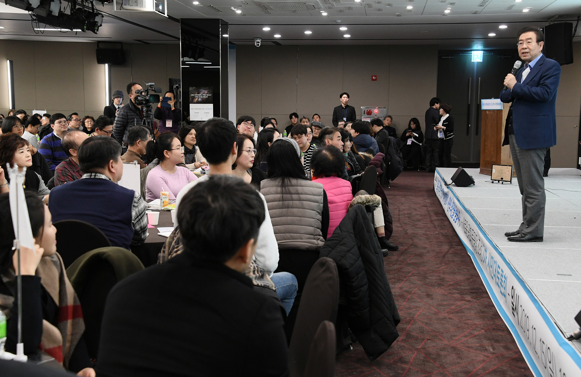 박원순 서울시장이 15일 오후 서울 세종문화회관 세종홀에서 열린 '새로운 광화문광장 조성 2차 시민대토론회'에서 발언하고 있다. 서울시 제공