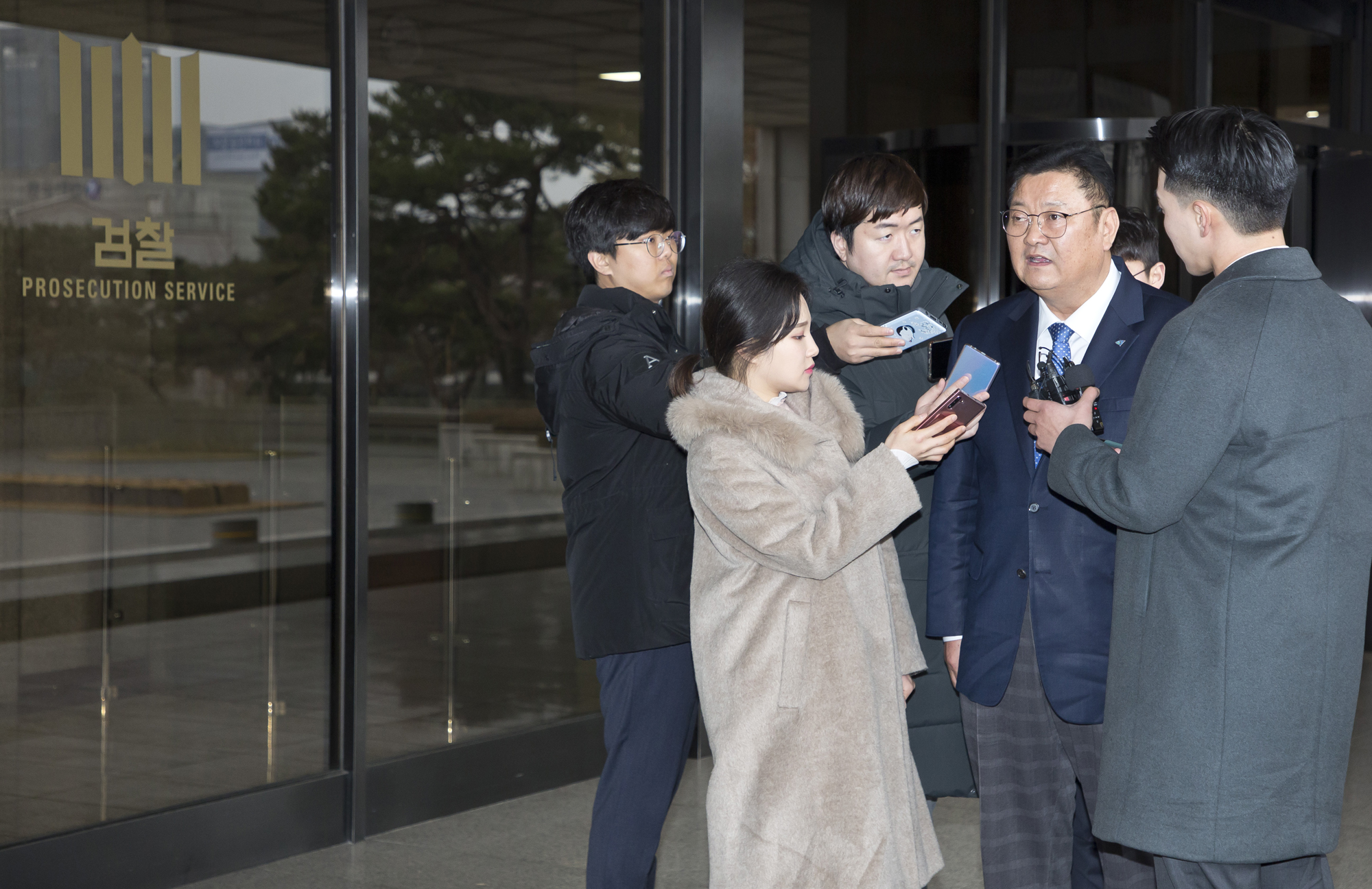 사진설명 | [eoimage=서울] 임준선 기자 = 울산시장 당내 경선을 포기하는 대가로 청와대로부터 고위직을 제안받았다는 의혹을 받고 있는 임동호 전 더불어민주당 최고위원이 30일 오후 참고인 조사를 위해 서울 서초동 서울지방검찰청에 출석하며 취재진의 질의에 답하고 있다. 2019.12.30 eomaster@eoimage.com |