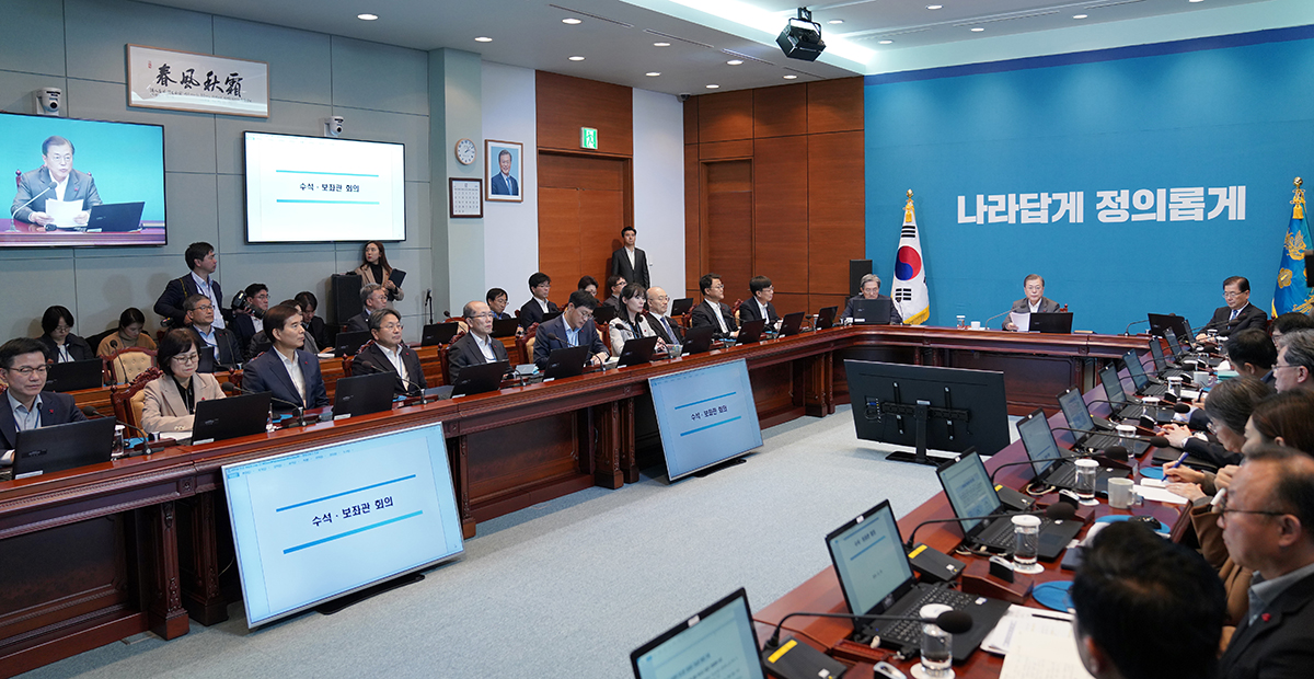 문재인 대통령이 30일 오후 청와대 여민관 영상회의실에서 열린 수석보좌관회의에서 모두 발언을 하고 있다. 2019.12.30