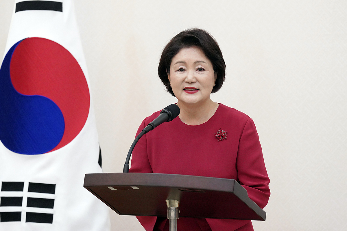 김정숙 여사가 30일 오후 청와대 본관 충무실에서 열린 ‘2019 한-아세안 특별정상회의 유공자 초청 오찬’에서 격려사를 하고 있다. 이날 오찬에는 준비기획단 및 외교부, 국토부·산업부·문체부 등 부대행사 주관부처, 한·아세안 센터와 아세안문화원 등에서 수고한 공무원·민간 관계자 총50명이 참석했다. 2019.12.30 사진 청와대제공 |