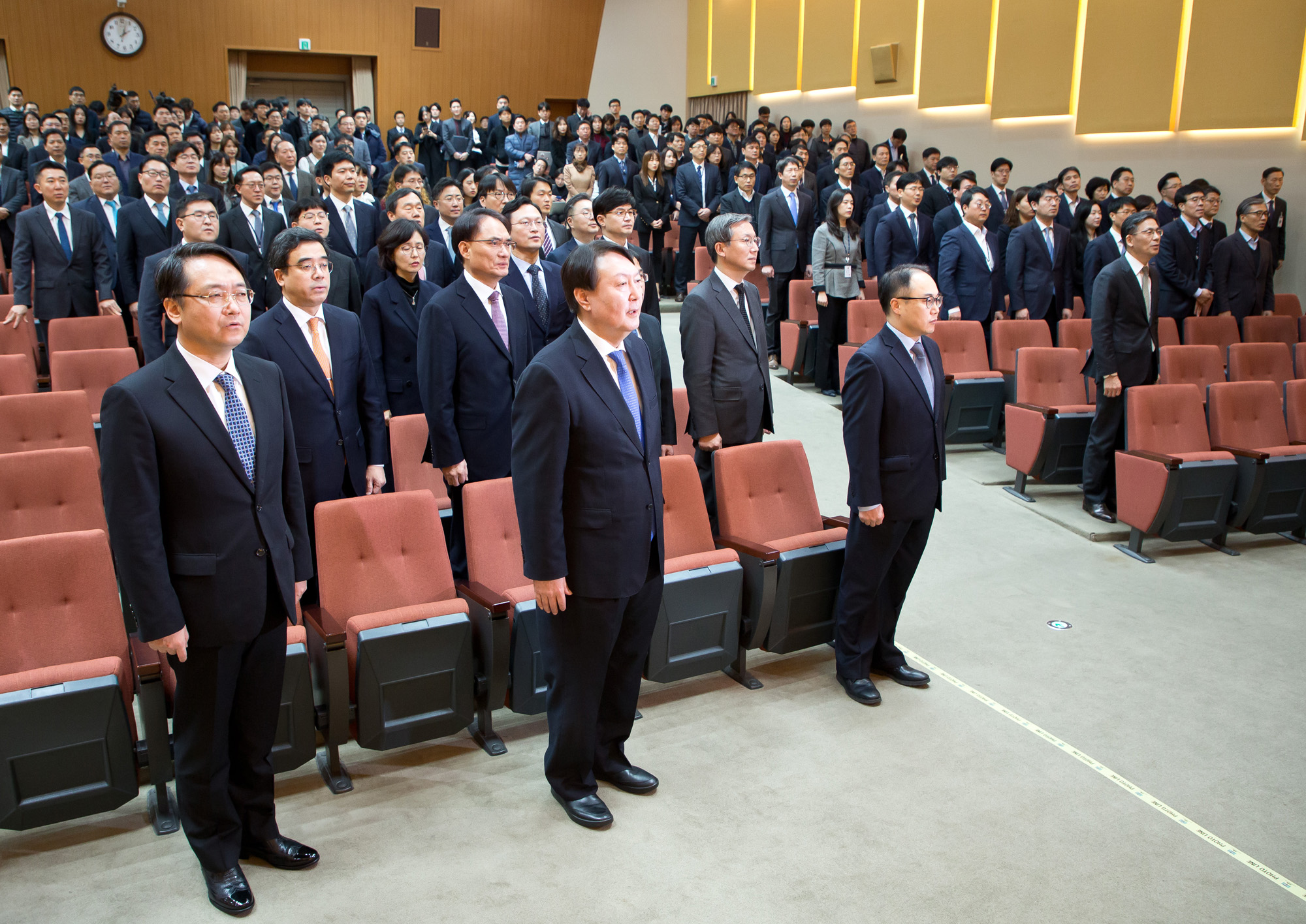 [Eoimage=서울] 임준선기자 = 2일 오후 서울 서초구 대검찰청대강당에서 ‘대검신년다짐회’ 가열렸다.윤석열검찰총장은 신년사를 낭독한 뒤 비공개로 대검간부들과 신년인사를 나눴다. 2020.01.02 eomaster@eoimage.com
