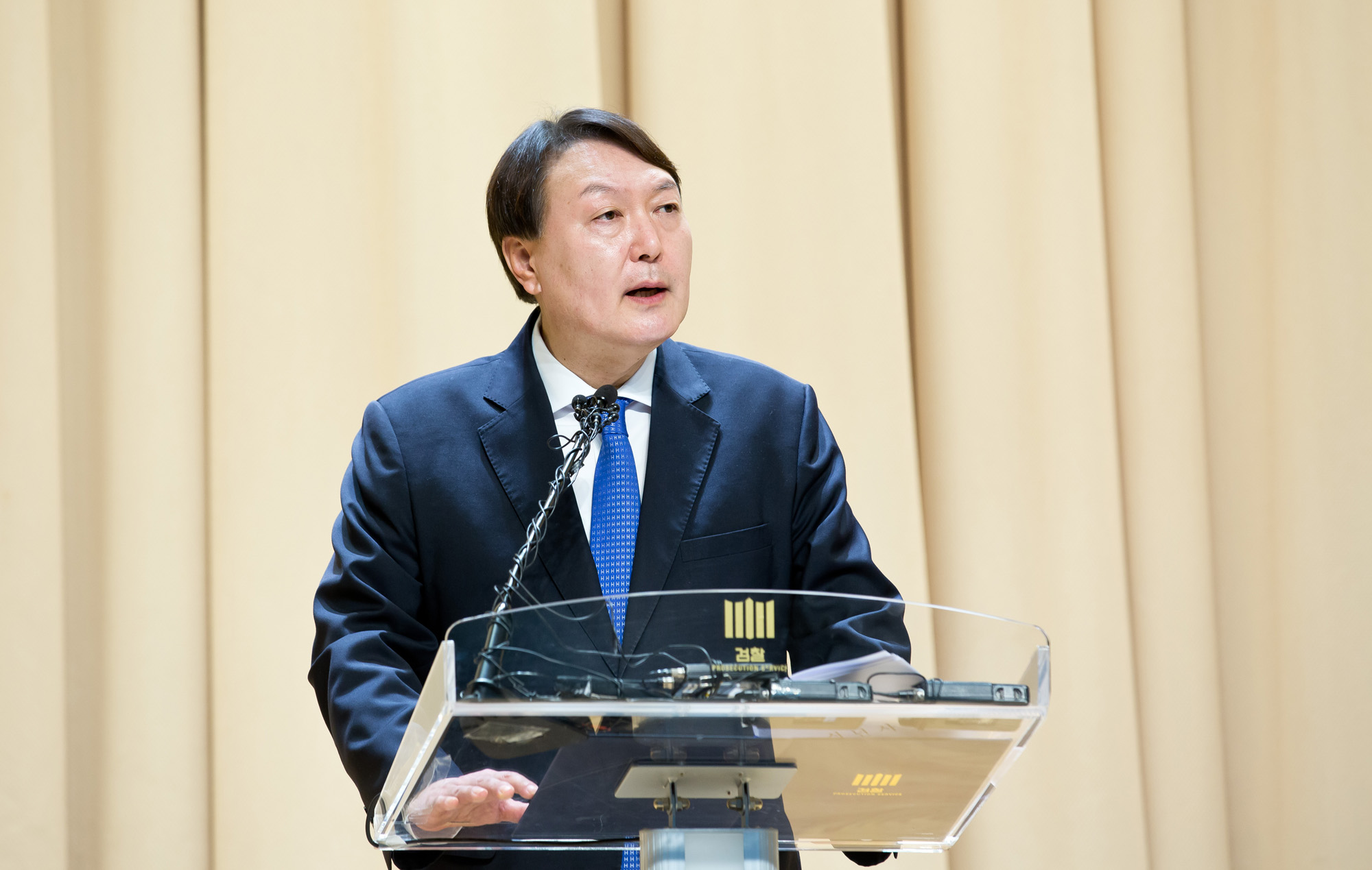 [Eoimage=서울] 임준선기자 = 2일 오후 서울 서초구 대검찰청대강당에서 ‘대검신년다짐회’ 가열렸다.윤석열검찰총장은 신년사를 낭독한 뒤 비공개로 대검간부들과 신년인사를 나눴다. 2020.01.02 eomaster@eoimage.com