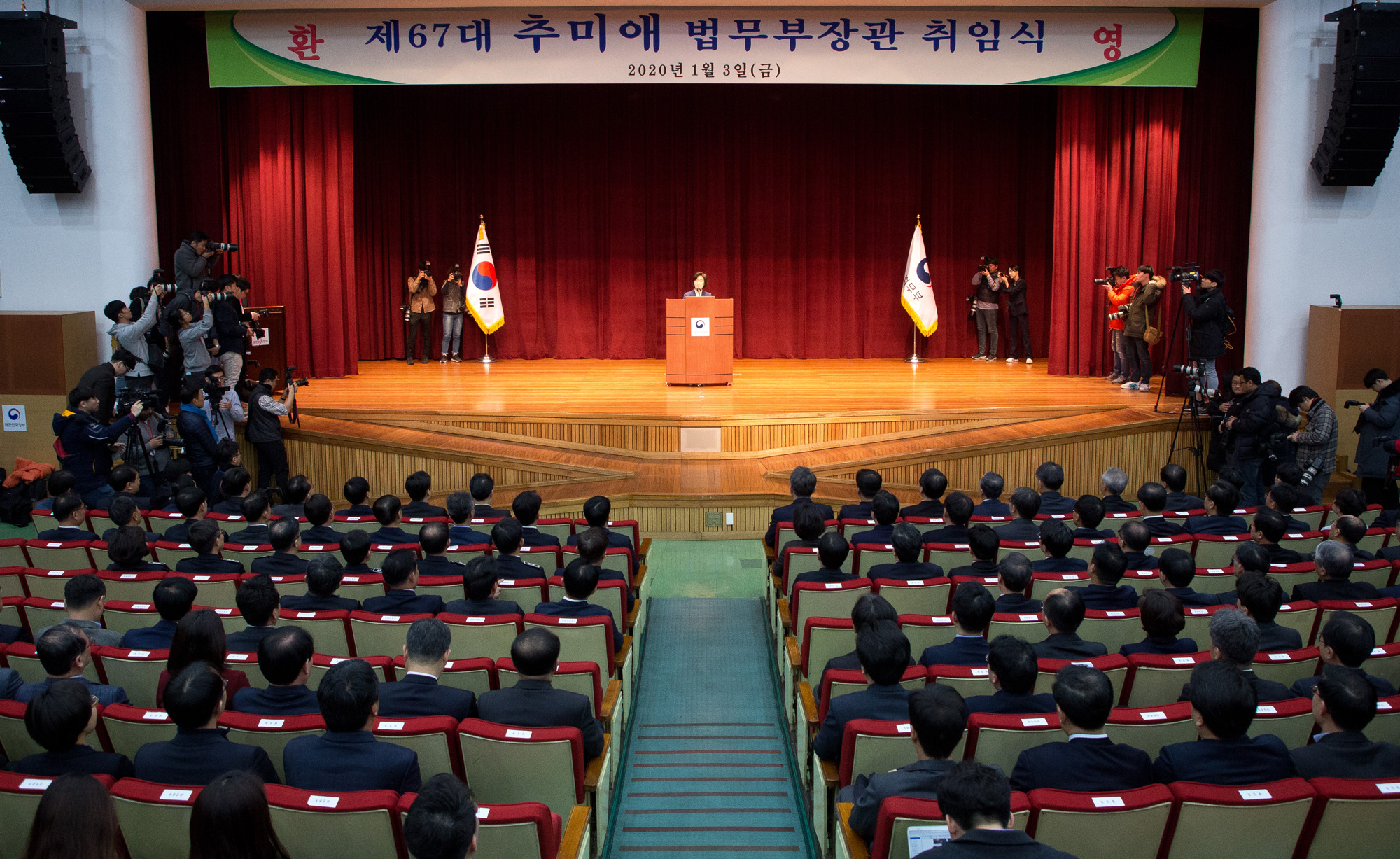 | 사진설명 | [Eoimage=서울] 임준선기자 = 추미애 신임 법무부 장관이 3일 오전 경기도 과천정부청사 법무부에서 열린 취임식에 참석해 취임사를 하고 있다. 추 장관은 취임 일성으로 "검찰개혁에 대한 국민적 요구와 지지는 역대 최고조"라며 "이제는 검찰 안에서도 변화와 개혁을 향한 목소리가 나와야 한다"고 밝혔다. 2020.01.03 eomaster@eoimage.com |