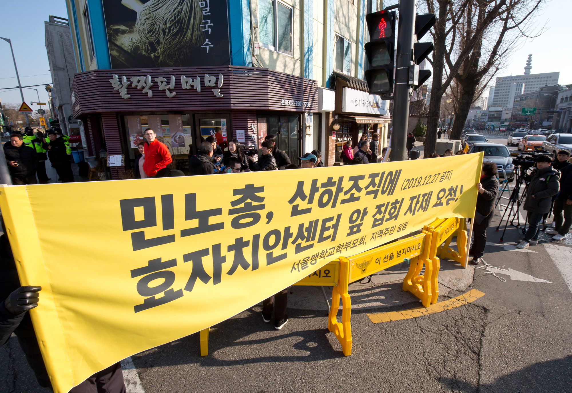 | 사진설명 | [Eoimage=서울] 임준선기자 = 맹학교 학부모들과 시각 장애인들이 4일 오후 서울 종로구 경복궁역 인근에서 보수집회 행진 때 시각장애인의 학습권 및 주민 안정권 확보를 촉구하는 현수막 집회를 하고 있다. 2020.01.04 eomaster@eoimage.com |