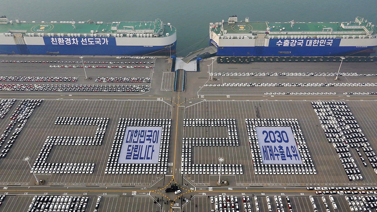문재인 대통령이 3일 오전 경기도 평택시 평택항 친환경차 수출현장을 방문.