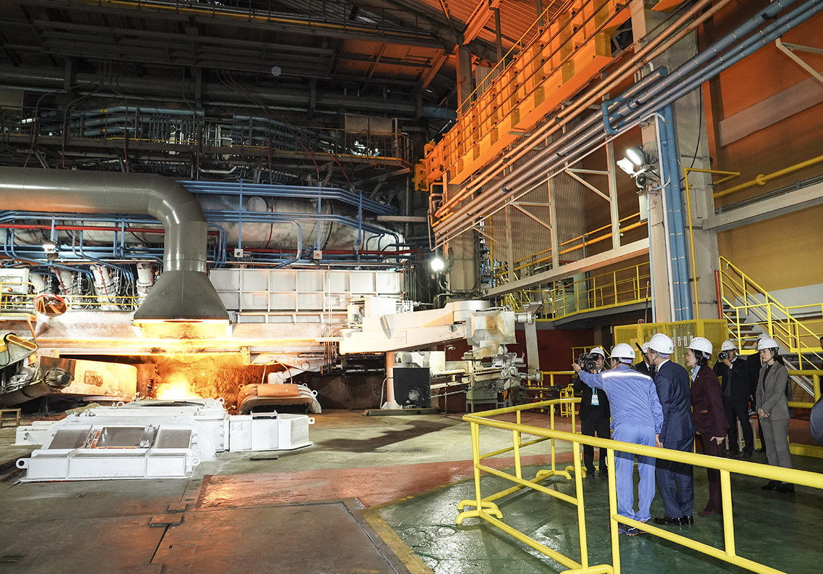 문재인 대통령이 9일 경북 포항 포스코 스마트공장을 방문해 시설을 둘러보고 있다.