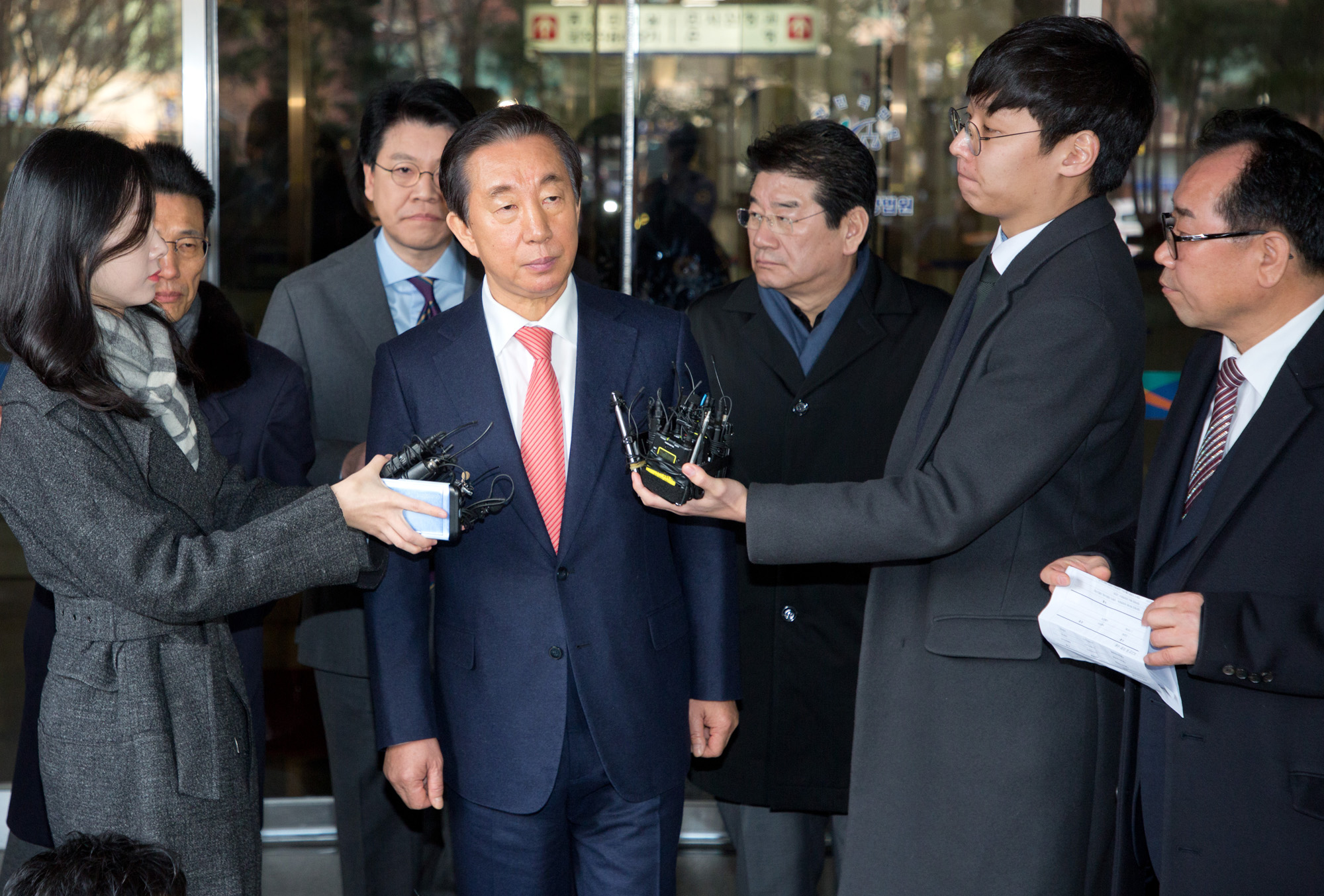 [서울=eoimage] 임준선 기자 = KT로부터 '딸 부정채용' 형태의 뇌물을 받은 혐의로 재판에 넘겨진 자유한국당 김성태 의원이 17일 오전 서울 양천구 서울남부지법에서 1심 무죄를 선고 받고 법원을 나서고 있다. . 2020.01.17