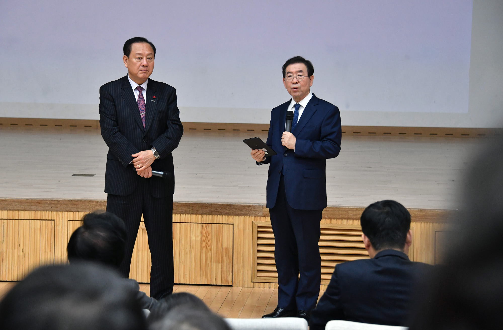 서울 마포구가 20일 마포중앙동서관에서 유동균 구청장과 박원순 서울시장을 비롯해 시·구의원, 주민 등 350여명이 자리한 가운데 '서울시장과 함께하는 마포구 2020 예산설명회'를 개최했다. 서울시 제공