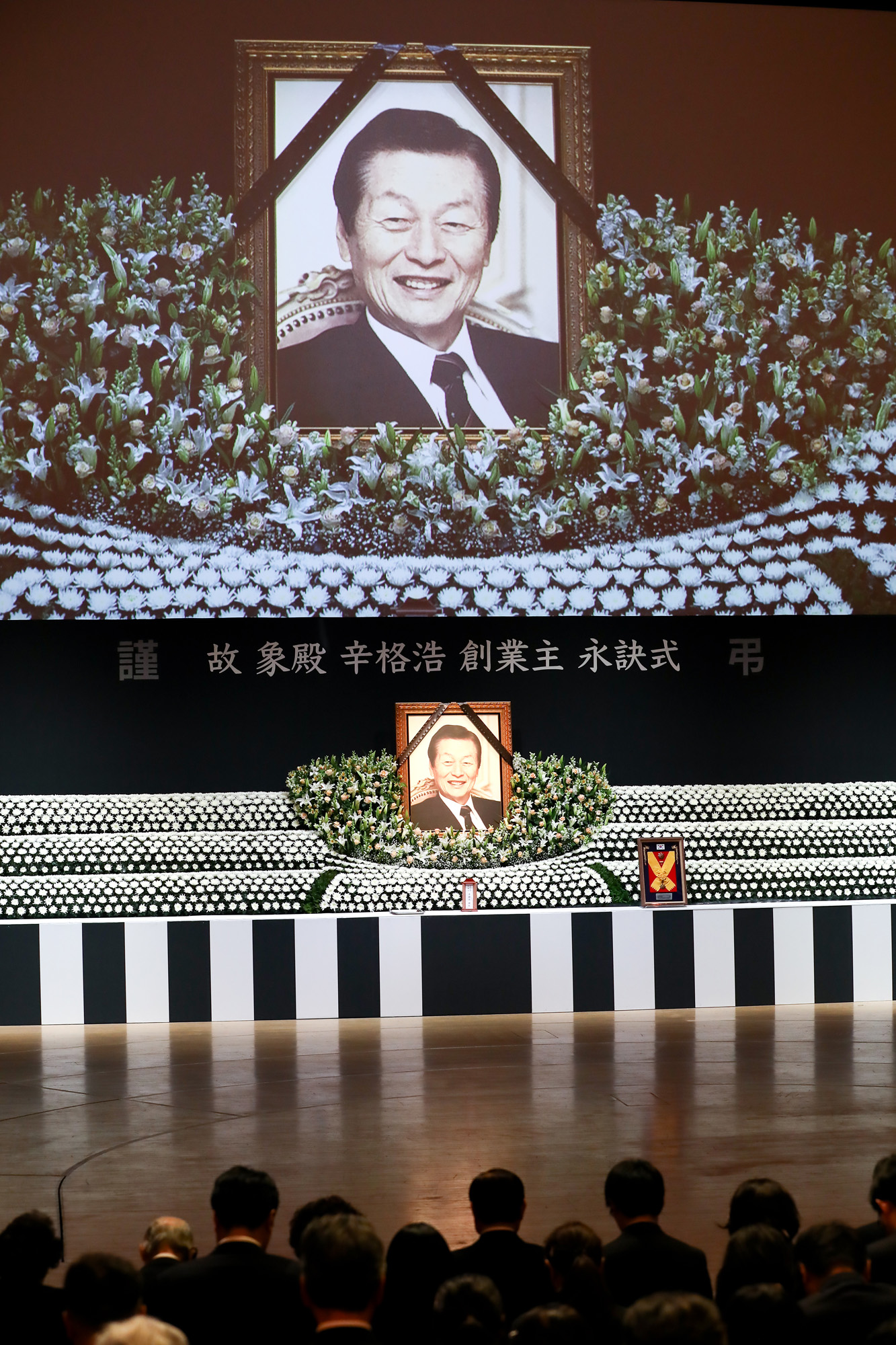 [Eoimage=서울] 박정훈 기자 = 롯데그룹 창업주 고(故) 신격호 명예회장의 영결식이 22일 오전 서울 서초구 롯데월드몰 롯데콘서트홀에서 열리고 있다. 2020.1.22. eomaster@eoimage.com