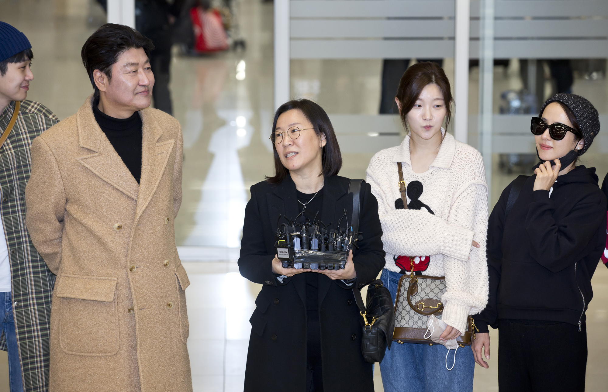 | 사진설명 | [eoimage=인천] 임준선 기자 = 영화 '기생충'의 주역들이 제92회 미국 아카데미 시상식을 마치고 12일 오전 인천국제공항을 통해 귀국했다. 배우 이선균, 최우식, 송강호, 곽신애 바른손이앤에이 대표, 배우 박소담, 조여정. 2020.02.12 eomaster@eoimage.com |