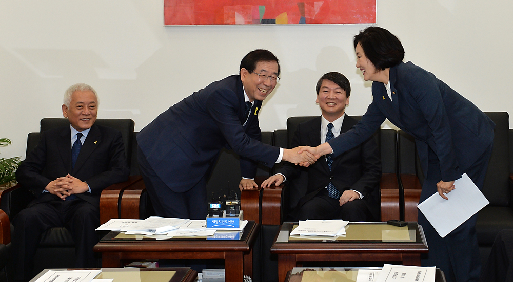 김한길, 안철수 공동대표와 박원순 시장의 만남