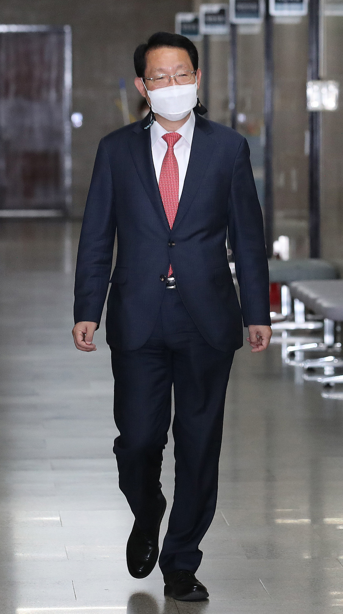 국민의힘 서울·부산시장 재보궐선거 경선준비위원장인 김상훈 의원이 15일 오전 서울 여의도 국회에서 열린 경선준비위원회 첫 회의에 참석하기 위해 이동하고 있다