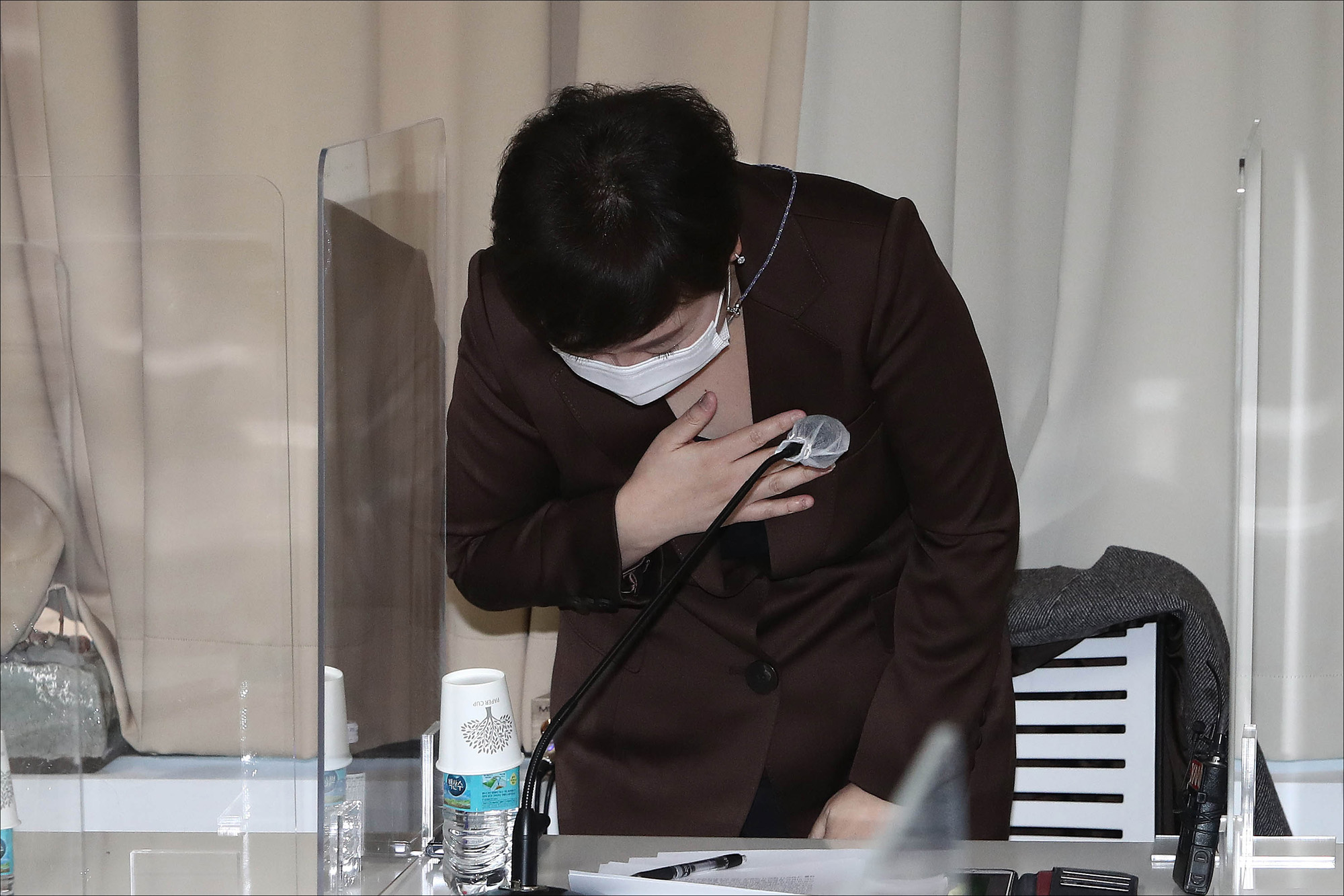 이언주 전 국민의힘 의원이 3일 오후 서울 마포구 마포현대빌딩에서 열린 '더 좋은 세상으로(마포포럼)' 정례 세미나에서 인사를 하고 있다.