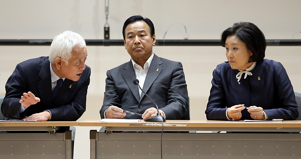 <정치=세월호유가족>여야대표 면담 27일 오후 국회 의원회관 회의실.세월호 유가족들이 국회를 찾았다.심상정 정의당 원내대표, 김한길 새정치민주연합 공동대표, 이완구 새누리당 비상대책위원장, 주호영 정책위의장,박영선 새정치민주연합 원내대표, 이상규의원이 27일 국회 의원회관 대강당에서 세월호 유가족들에게 고개숙여 인사하고 의견을 청취했다. 2014.5.27<이훈구기자ufo@donga.com> 현장풀 |