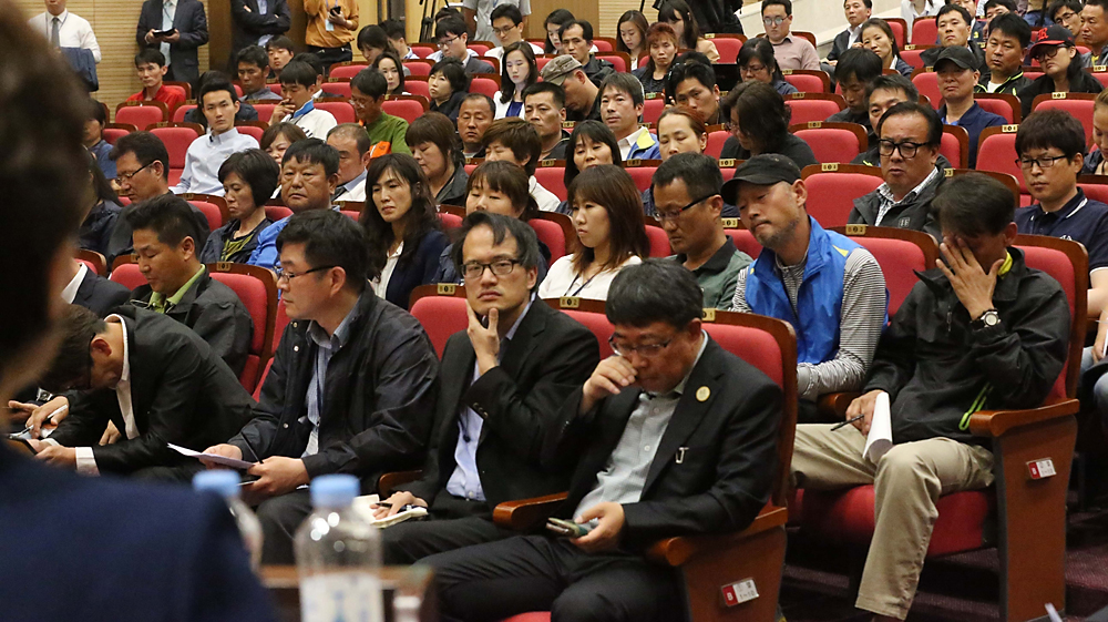 | 사진설명 | 세월호 침몰사고 희생자 유가족들이 27일 오후 세월호 국정조사 합의가 지연되고 있는 국회를 방문해 의원회관 대회의실에서 김현미 새정치민주연합 세월호국정조사특위 간사의 여야 이견에 대한 설명을 듣고 있다. 이 자리에는 새누리당 이완구 비상대책위원장과 주호영 정책위의장, 새정치민주연합 김한길 안철수 공동대표와 박영선 원내대표, 정의당 심상정 원내대표, 통합진보당 이상규 의원 등 각 당 대표들이 참석해 유가족들의 이야기를 들었다. 이정우 선임기자 woo@ha |