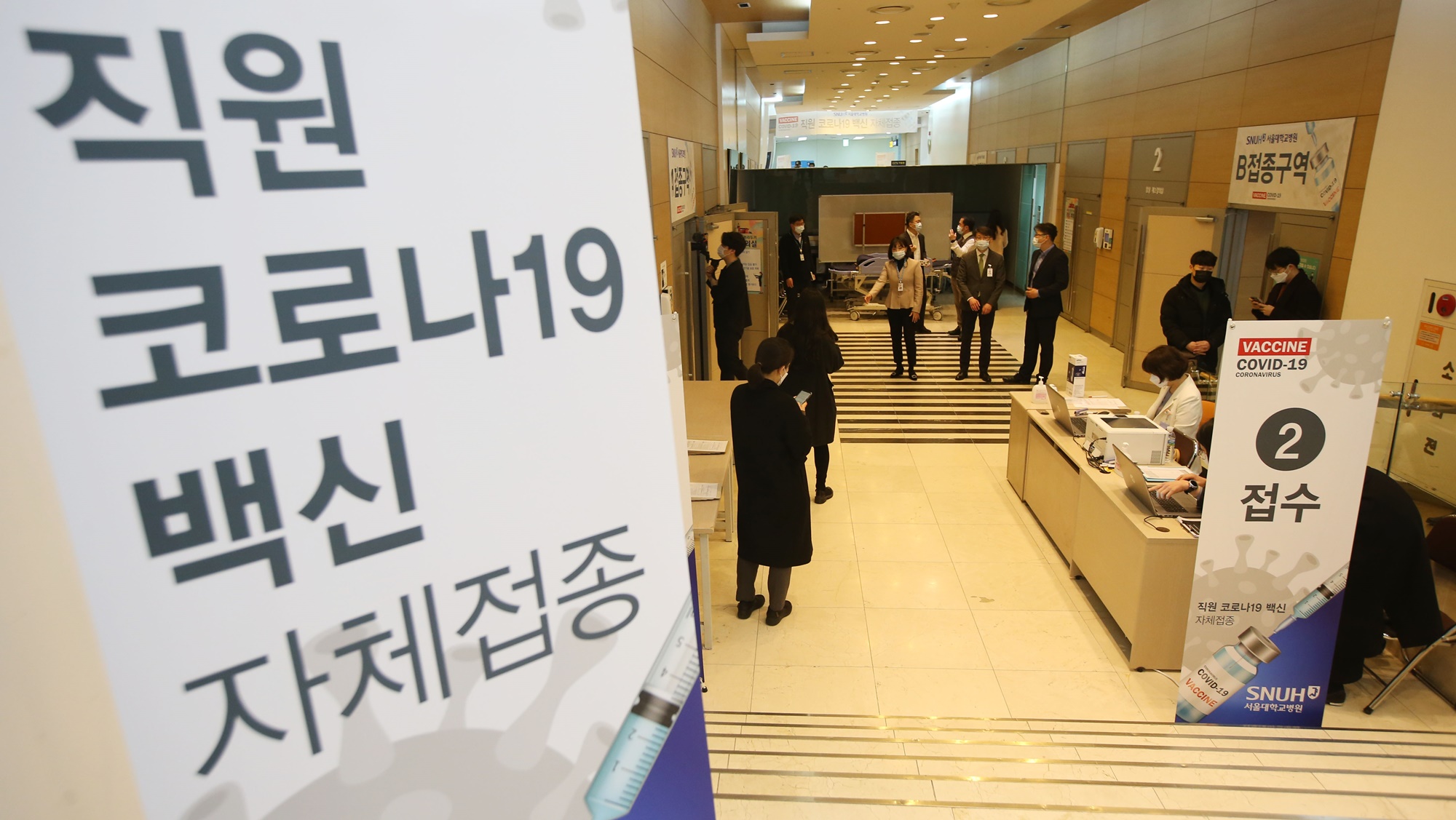 4일 오전 서울 종로구 서울대어린이병원 임상강의실에서 의료진들이 아스트라제네카(AZ) 신종 코로나바이러스 감염증(코로나19) 백신 1차접종 위해 분주히 움직이고 있다. 이날 서울대병원은 국내 '빅5'로 불리는 상급종합병원 중 처음으로 백신을 접종했다. 20210304사진공동취재단 |