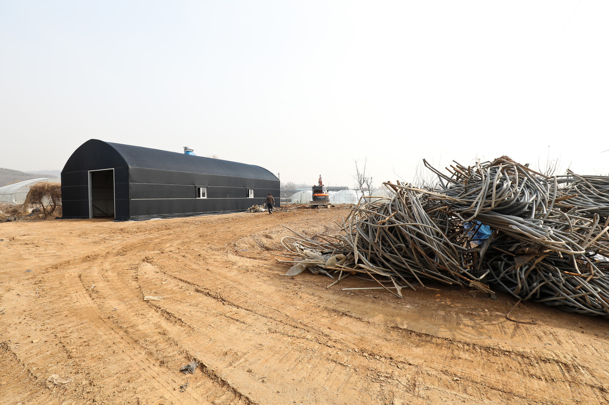 | 사진설명 | [eoimage=광명] 임준선 기자 = 11일 경기 광명시 한 공무원이 매입한 노온사동의 토지 모습. 지은 지 얼마 되지 않은 것으로 보이는 비닐하우스가 세워져 있다. 이곳은 지난해 이 공무원이 밭 1천322㎡를 취득한 곳이다. 한 토지공사 업체가 슈퍼도자지 작물 농사전, 배수로와 농사 페자재를 제거 하고 있다.2021.03.11 |