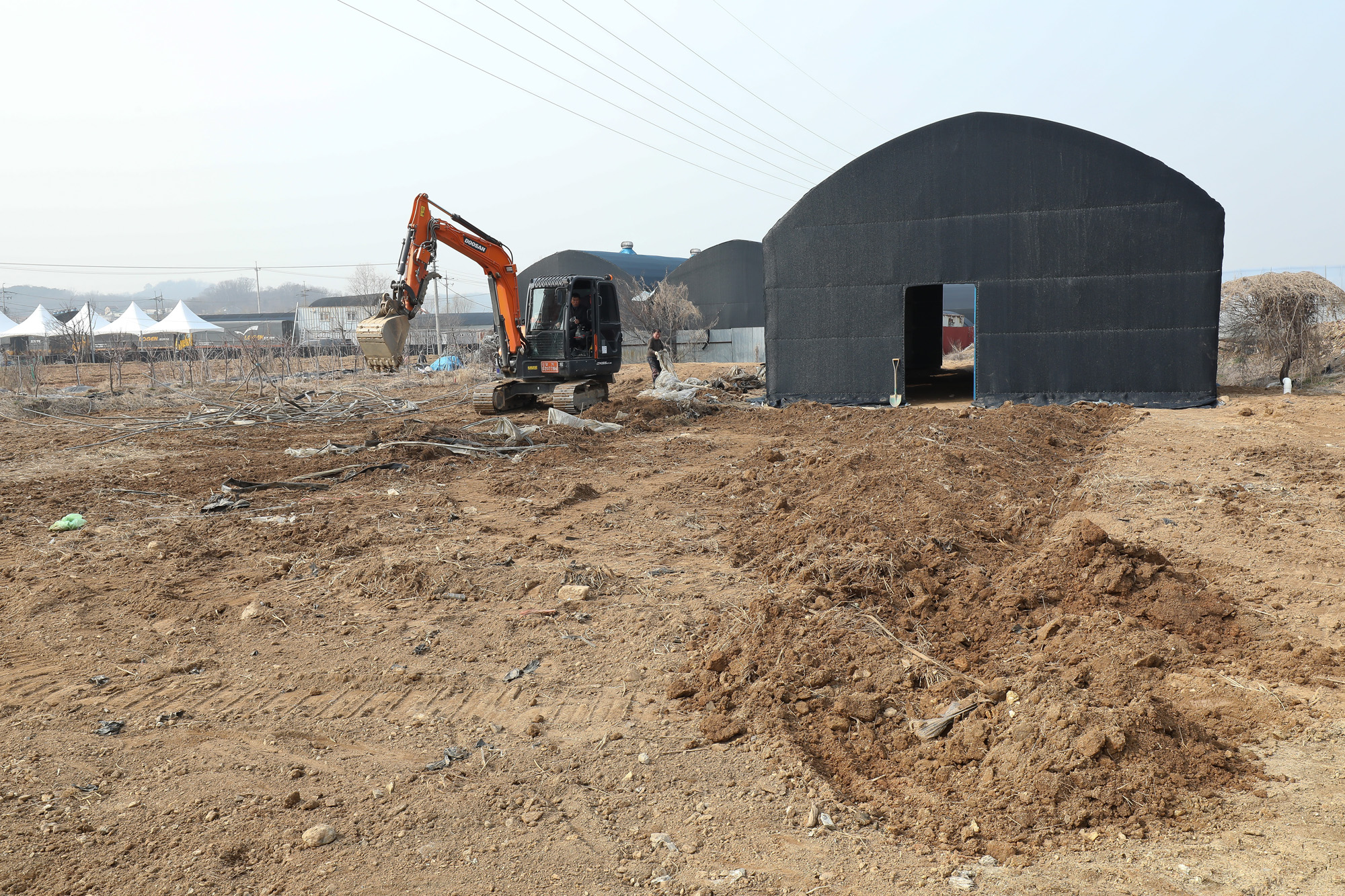 | 사진설명 | [eoimage=광명] 임준선 기자 = 11일 경기 광명시 한 공무원이 매입한 노온사동의 토지 모습. 지은 지 얼마 되지 않은 것으로 보이는 비닐하우스가 세워져 있다. 이곳은 지난해 이 공무원이 밭 1천322㎡를 취득한 곳이다. 한 토지공사 업체가 슈퍼도자지 작물 농사전, 배수로와 농사 페자재를 제거 하고 있다.2021.03.11 |