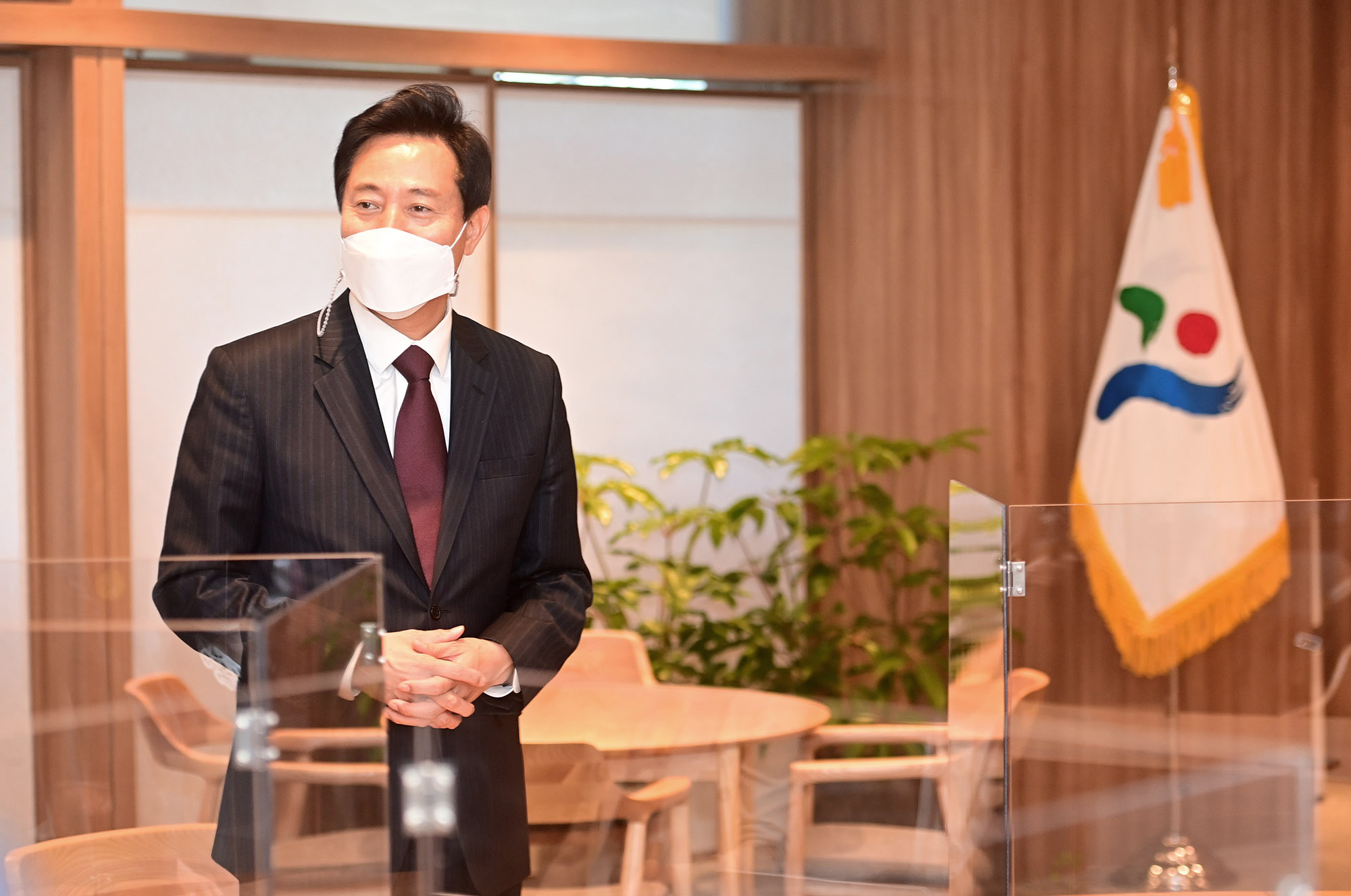 오세훈 서울시장 당선인이 8일 오전 서울 중구 서울시청 6층 집무실에서 사무 인계인수 책자에 서명을 하고 있다.