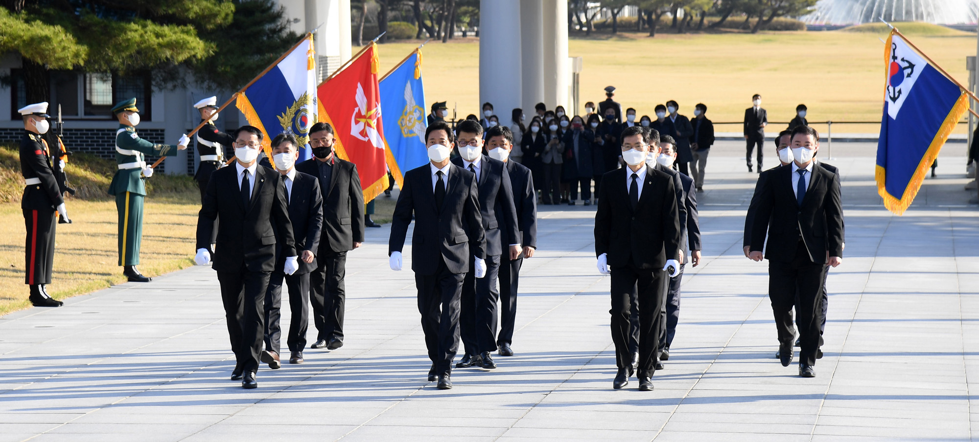 신임 오세훈 서울시장이 8일 서울 국립현충원을 찾아 참배하고 있다. 2021.04.08. 서울시 제공