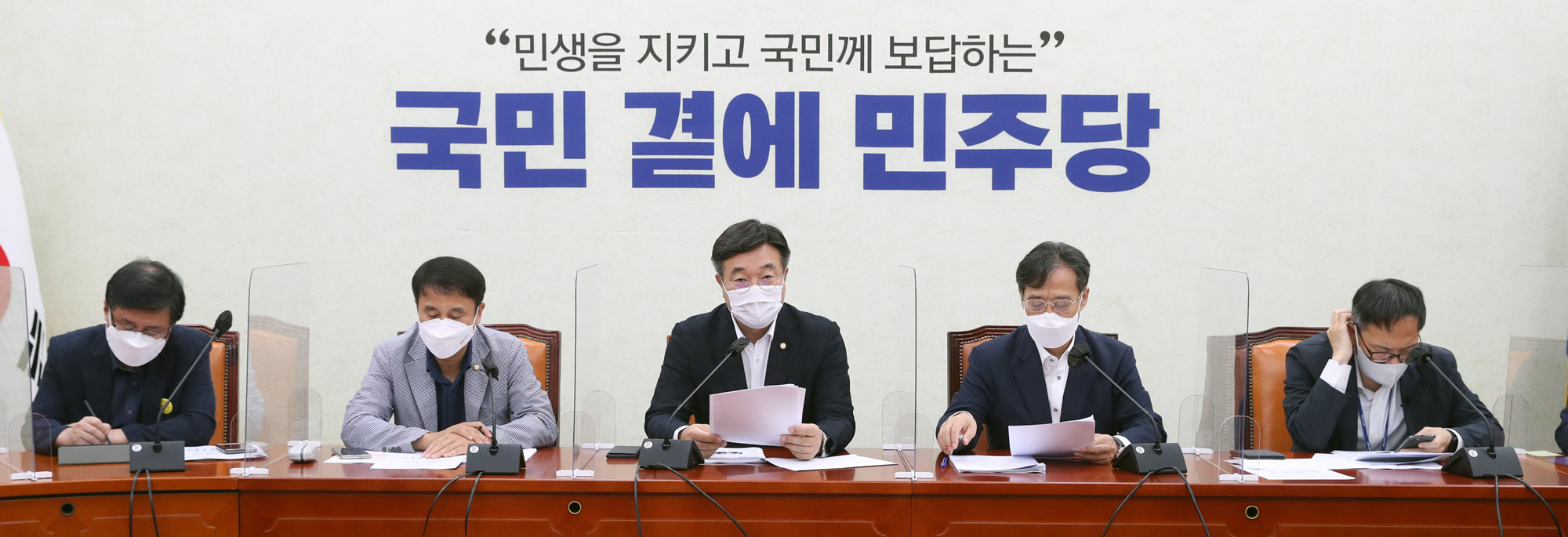 윤호중 더불어민주당 원내대표가 15일 서울 여의도 국회에서 열린 정책조정회의에서 발언하고 있다.