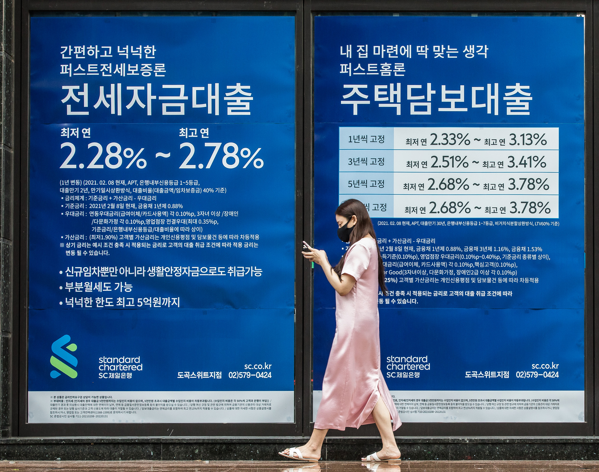| 사진설명 | [서울=eoimage] (시사저널) 최준필 기자 = NH농협은행과 농협중앙회(지역 농,축협)에 이어 대출을 일부 중단하는 은행이 또 나올 수 있다는 우려에 대해 금융위원회가 다른 곳은 '적정 공급'이 계속된다며 진화에 나섰다. 금융위는 23일 "대형 시중은행을 포함한 대다수 금융회사는 가계대출 자체 취급 목표치까지 여유가 많이 남아 있다"고 말했다. 24일 서울 강남구 도곡동의 한 시중은행 앞에 대출 광고가 붙어 있다. 2021.08.24. eomaster@eoimage.com |