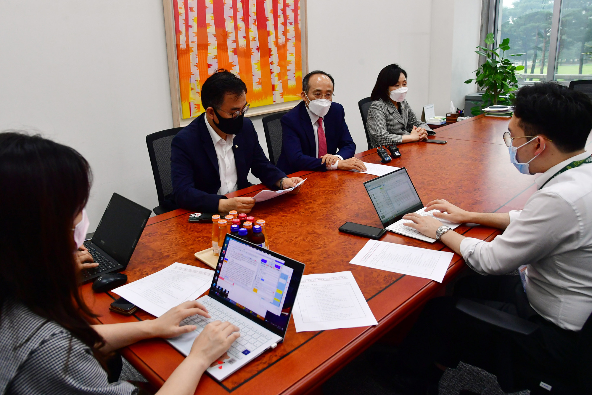 | 사진설명 | 국민의힘 추경호 원내수석부대표가 7일 국회에서 언론중재법 관련 8인 협의체의 국민의힘 추천 명단을 발표하고 있다. (추천 명단으로 당내에서는 최형두, 전주혜 의원과 외부 전문가로 문재완 한국외대 법학전문대학원 교수와 신희석 전환기정의워킹그룹 법률분석관을 지명했다.) |
