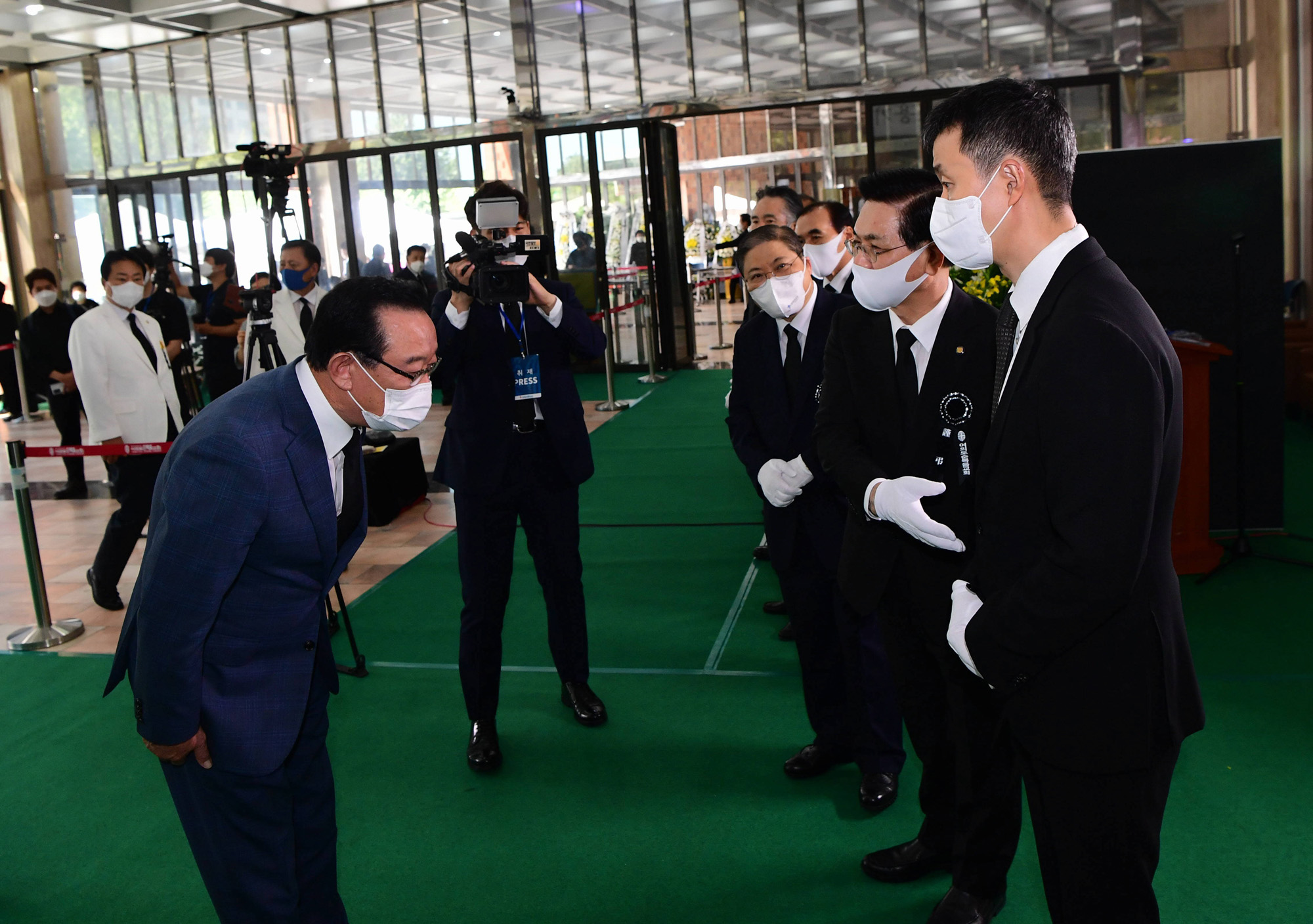 송철호 울산시장이 15일 서울 여의도순복음교회 대성전 1층 베다니홀에 마련된 고 조용기 원로목사의 빈소에서 조문하고 있다.