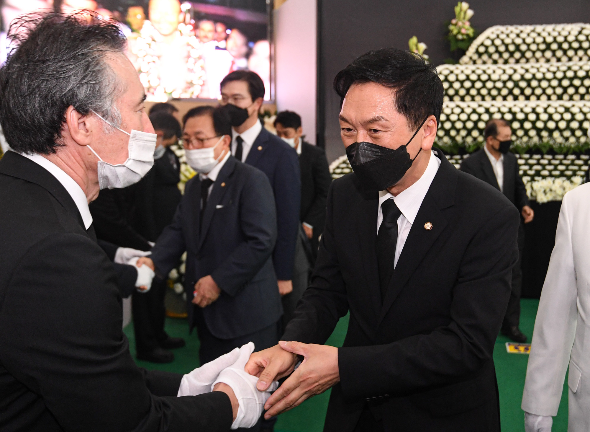김기현 국민의힘 원내대표가 15일 서울 여의도순복음교회 대성전 1층 베다니홀에 마련된 고 조용기 원로목사의 빈소에서 조문하고 있다.