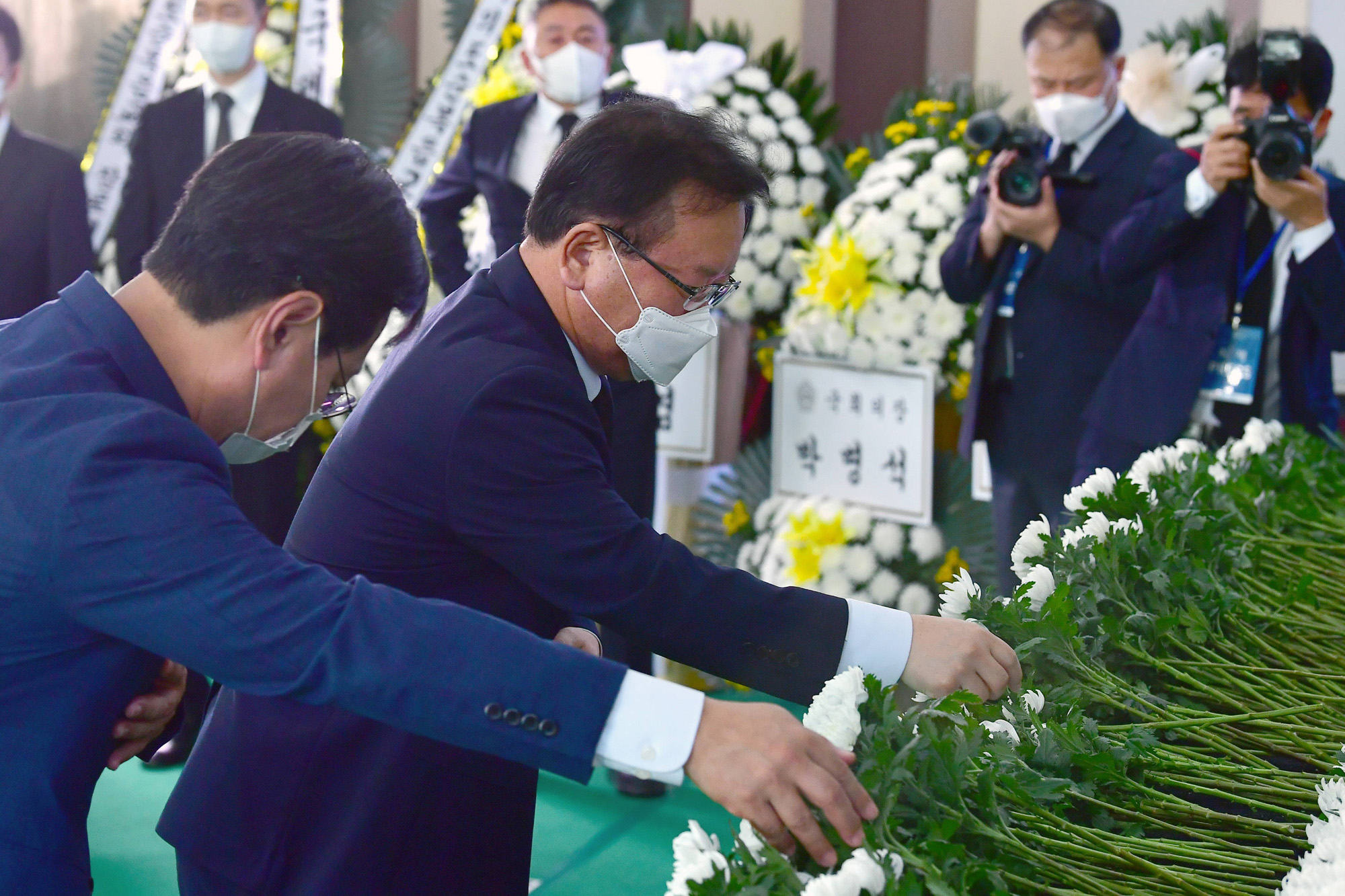 김부겸 국무총리가 15일 서울 여의도순복음교회 1층 베다니홀에 마련된 고 조용기 원로목사 빈소에서 조문하고 있다.
