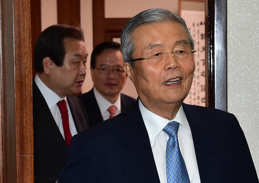 김종인 더민주당 비대위 대표와 김무성 새누리당 대표가 23일 오전 국회의장 면담을 마친뒤 의장실을 나서고 있다. /2016/02/23