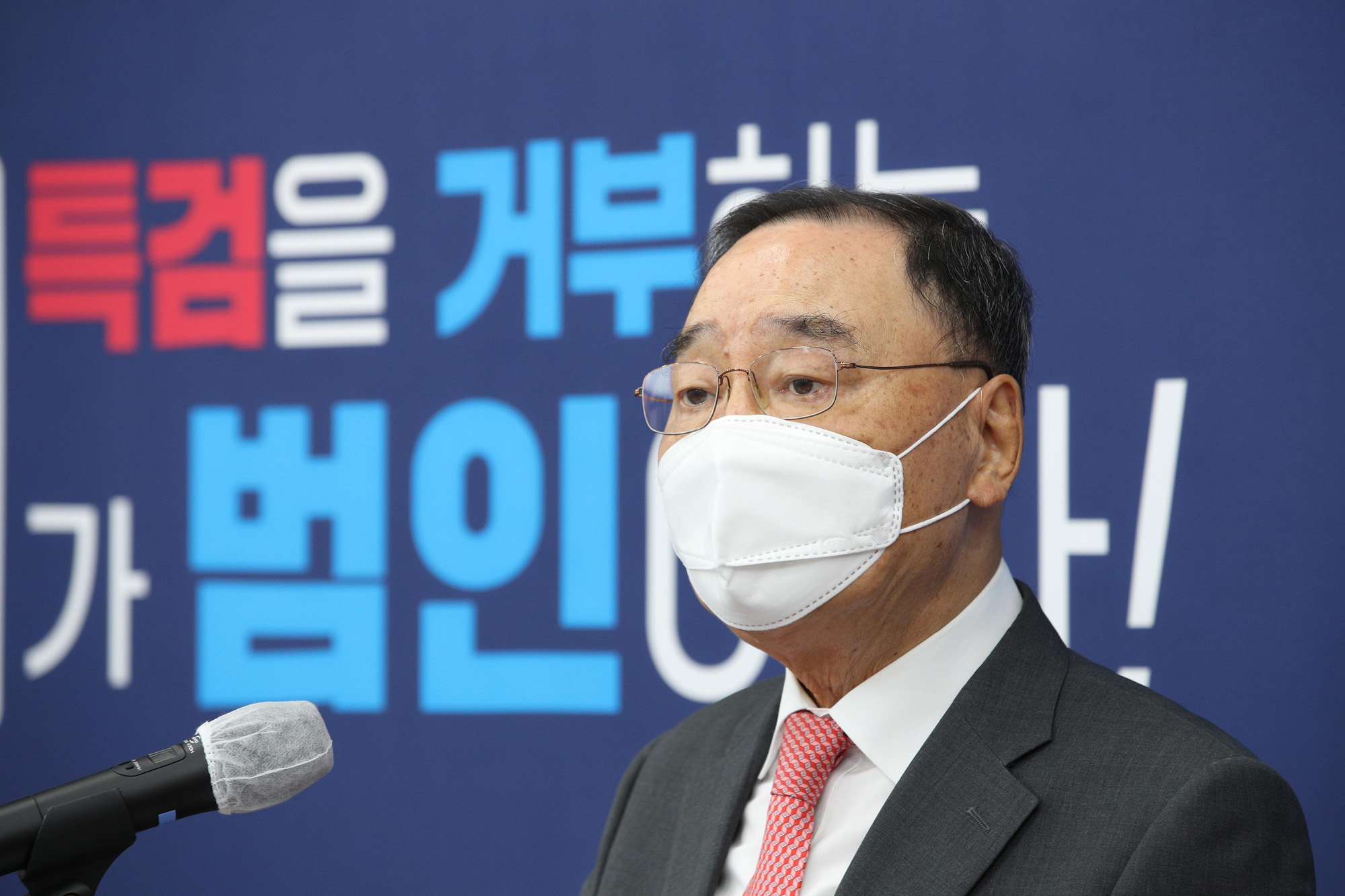 정홍원 국민의힘 선거관리위원장이 8일 오전 국회에서 대선 후보를 8명에서 4명으로 추리는 2차 예비경선(컷오프) 결과를 발표하고 있다. 원희룡, 유승민, 윤석열, 홍준표 (이상 가나다순) 후보가 진출했다. 2021.10.08. 국회사진취재단