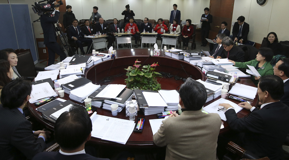 26일 서울 여의도 새누리당 당사에서 대구 중구ㆍ남구 공천신청자 면접이 열렸다. 새누리당 공직후보자추천관리위원회가 예비후보들에게 질문을 하고 있다.