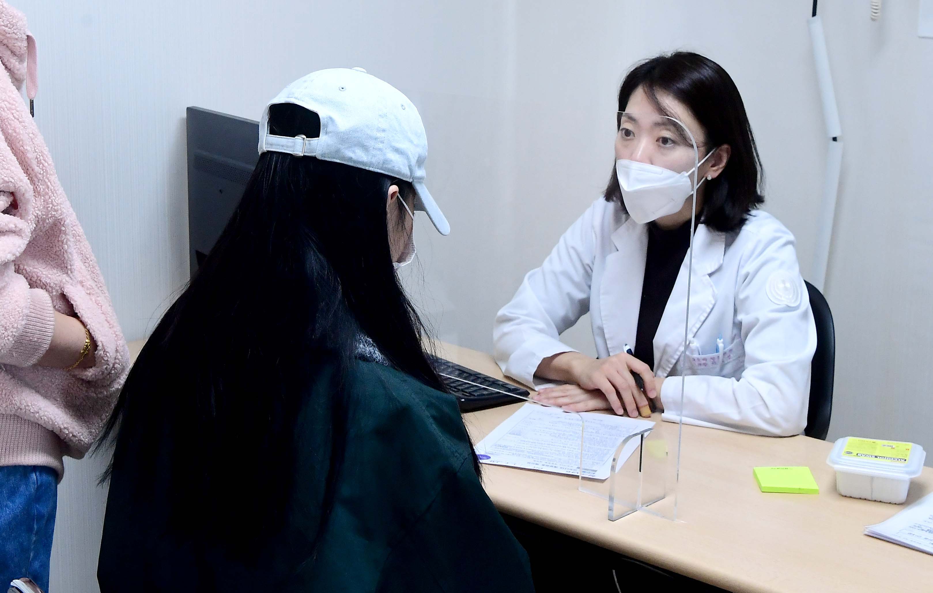 | 사진설명 | 12~17세 소아청소년에 대한 코로나19 백신 접종이 시작된 18일 서울 양천구 홍익병원에서 한 학생이 코로나19 백신접종에 앞서 예진을 받고 있다. 이날부터 16∼17세 청소년(2004∼2005년생)과 임신부의 백신 접종이 시작된다. 이외에도 12∼15세(2006∼2009년) 청소년에 대한 백신 접종 사전 예약이 이날 오후 8시부터 시작된다. 예약은 내달 12일까지 계속되며 접종은 내달 1일부터 27일까지다. 2021. 10. 18. 사진공동취재단 |