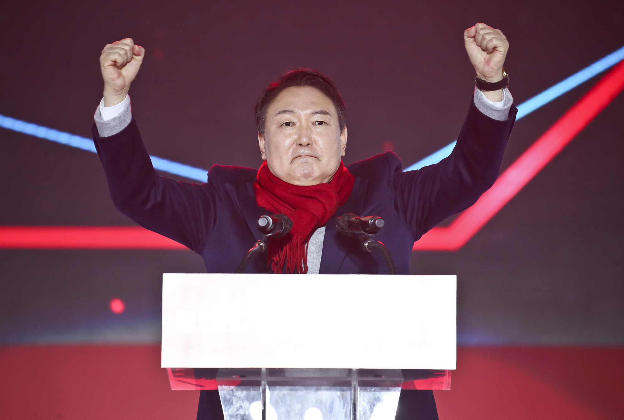 윤석열 국민의힘 대선 후보가 6일 서울 송파구 올림픽공원 체조경기장에서 열린 국민의힘 제20대 대통령선거 선거대책위원회 출범식에서 연설을 하고 있다.