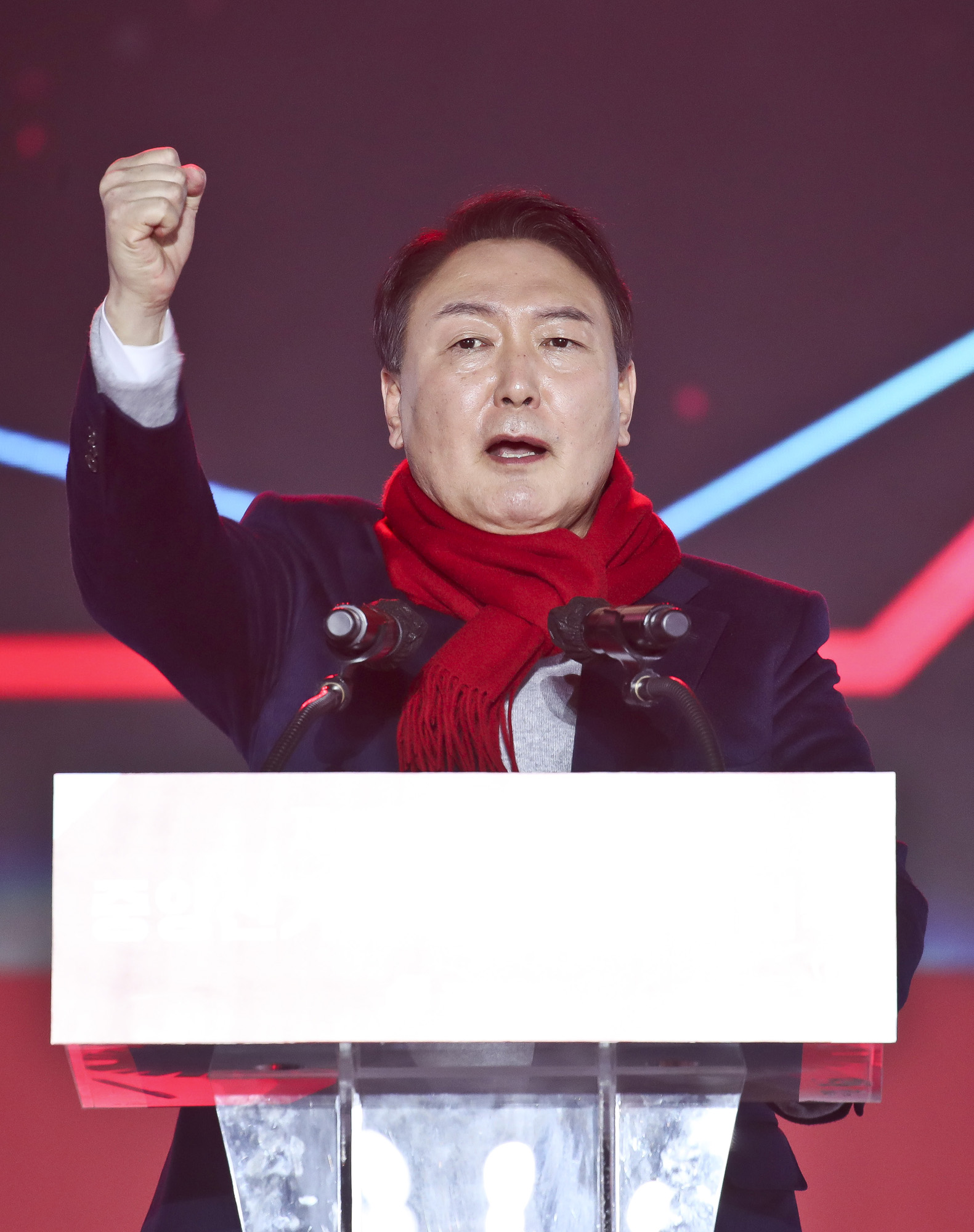 윤석열 국민의힘 대선 후보가 6일 서울 송파구 올림픽공원 체조경기장에서 열린 국민의힘 제20대 대통령선거 선거대책위원회 출범식에서 연설을 하고 있다.