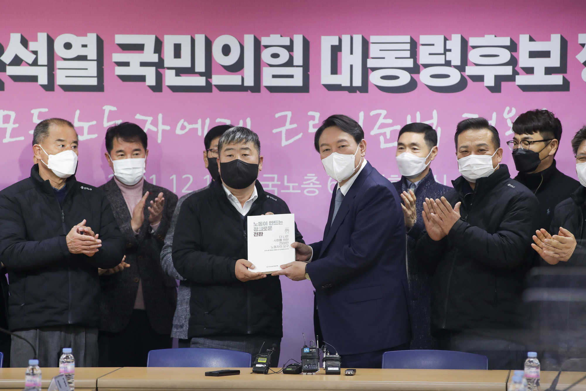 15일 오전 국민의힘 윤석열 대선후보가 한국노총을 방문 정책간담회를 하고 있다.