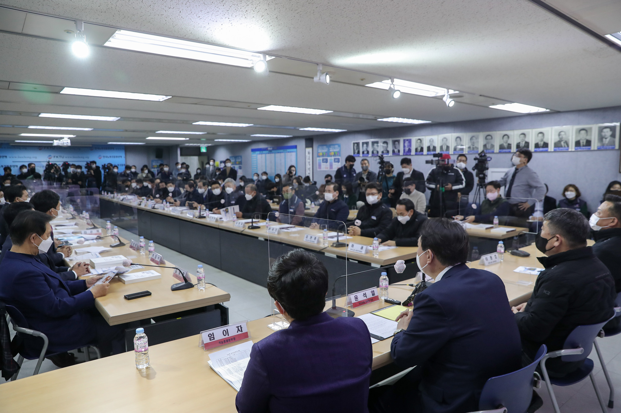 15일 오전 국민의힘 윤석열 대선후보가 한국노총을 방문 정책간담회를 하고 있다.