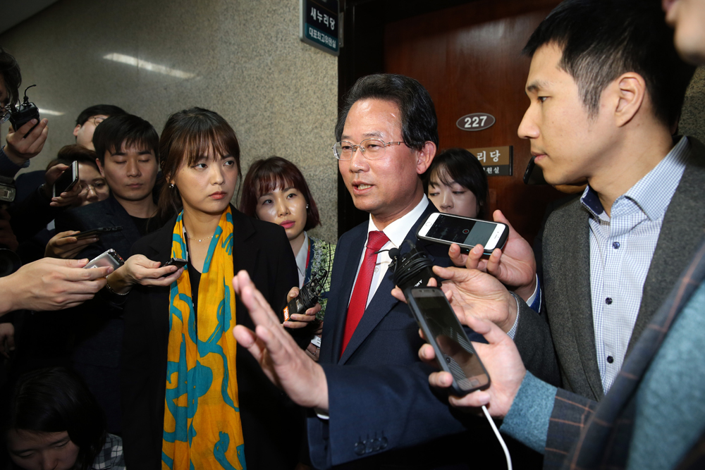 새누리당 최고위원회의가 16일 오전 국회에서 비공개로 열렸다. 류성걸 의원이 회의실 앞에서 기자들의 질문에 답하고 있다.
