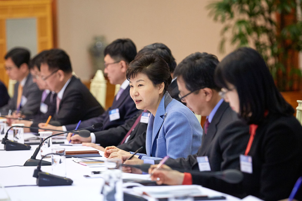 박근혜 대통령이 17일 오후 청와대 충무실에서 열린 지능정보사회 민관합동 간담회에 참석하고 있다.