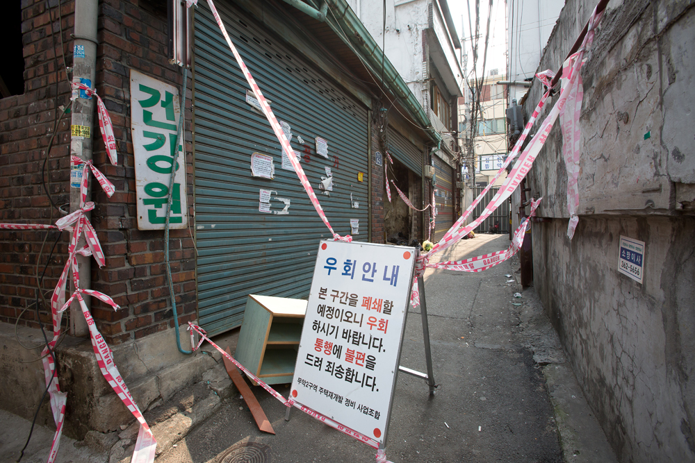 [Eoimage=서울] 임준선 기자 =23일 오후 무악동 제 2구역 재개발 지역 스케치. 재개발로 철거를 앞둔 서울 종로구 무악동(옛 서대문구 현저동) ‘옥바라지 골목’의 모습. 골목 맞은편에 있는 서대문형무소 수감자의 가족이 옥바라지를 위해 이곳을 찾으면서 여관촌이 형성된 것으로 추정된다.2016.03.23 eomaster@eoimage.com |