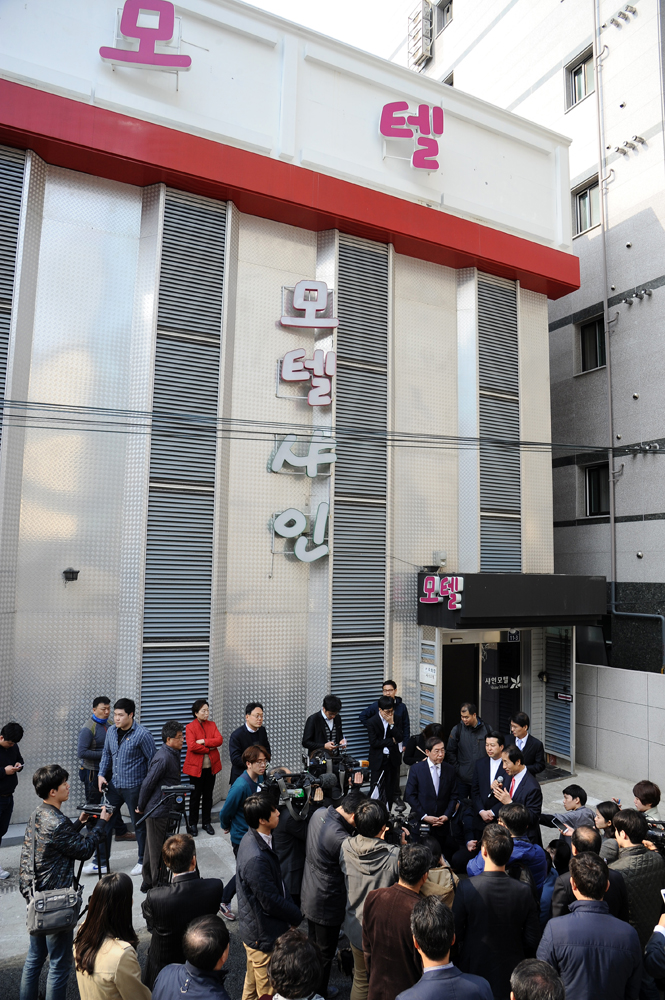박원순 서울시장과 4개 대학 총장들이 22일 오후 서울 서대문구 이화여대 인근 이화 스타트업 52번가를 방문해 설명을 듣고 있다. 서울시 제공