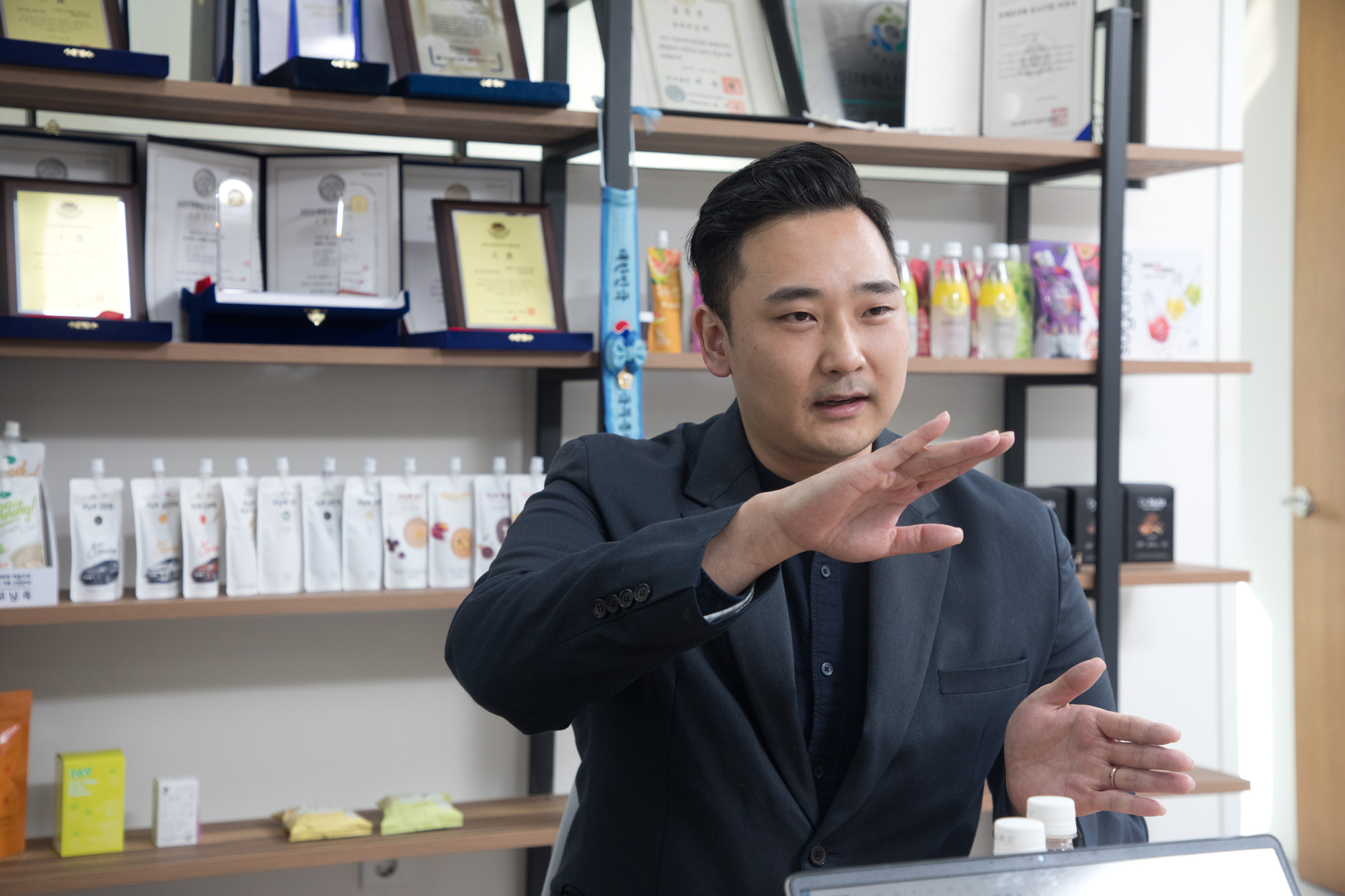 | 사진설명 | [Eoimage=서울](일요신문) 이종현 기자 = 17일 오후 강남 서초동에서 한녹엽 인테이크 대표를 만나 대체육, 대체유, 대체당 시장에서 인테이크가 스타트업 기업으로 살아남고 도약의 시점에 서게 된 과정과 향후 전망등에 대해 들어보았다. 2022.02.17. eomaster@eoimage.com |